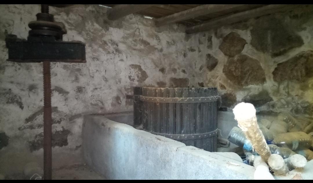 A prensa antiga será cuidadosamente reabilitada e posta novamente a trabalhar. O nosso objetivo é voltar a produzir vinho artesanal neste espaço, honrando a tradição e o trabalho manual.