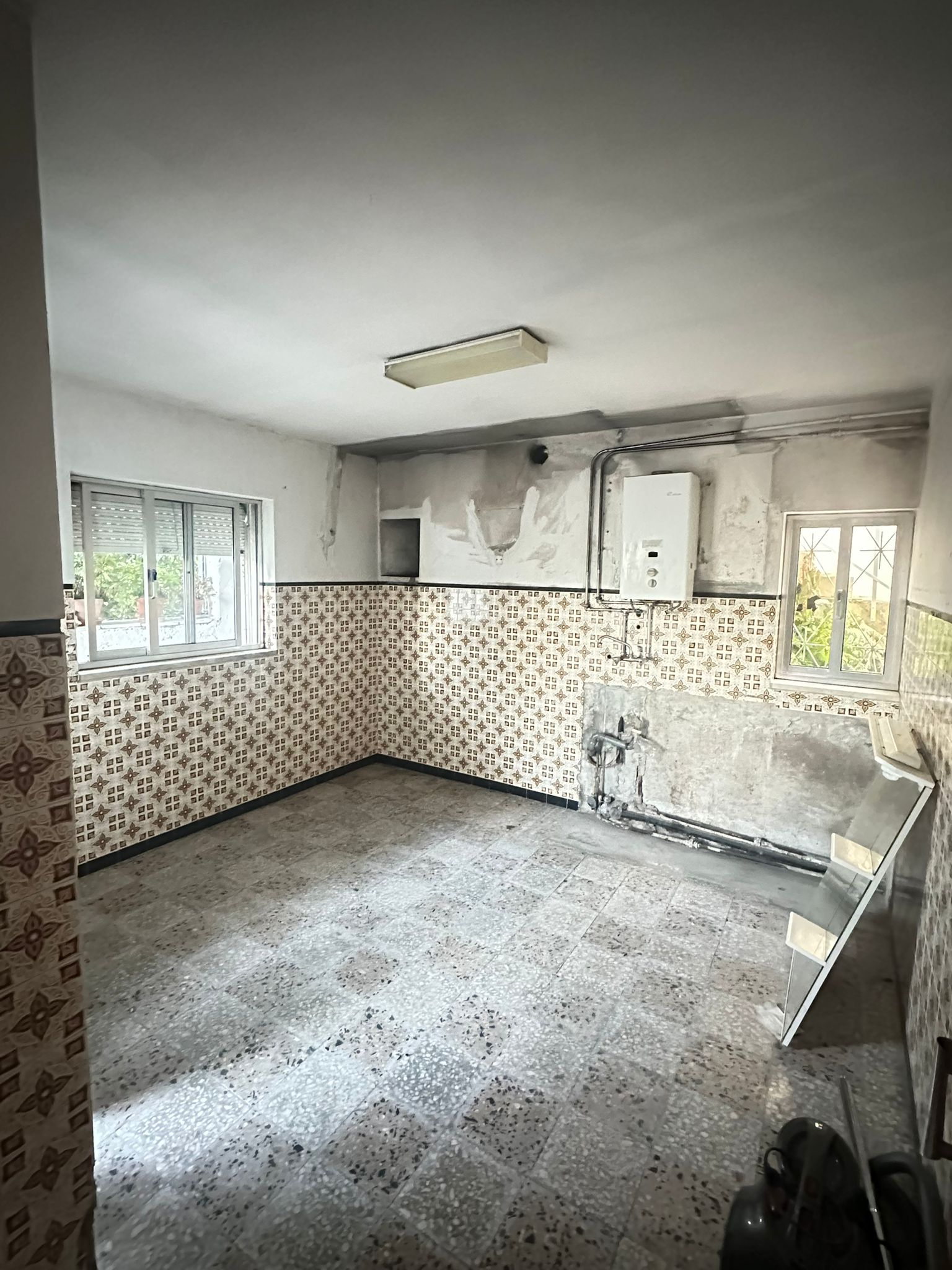 - Colocar tijoleira nova no chão da cozinha, corredor e casa de banho