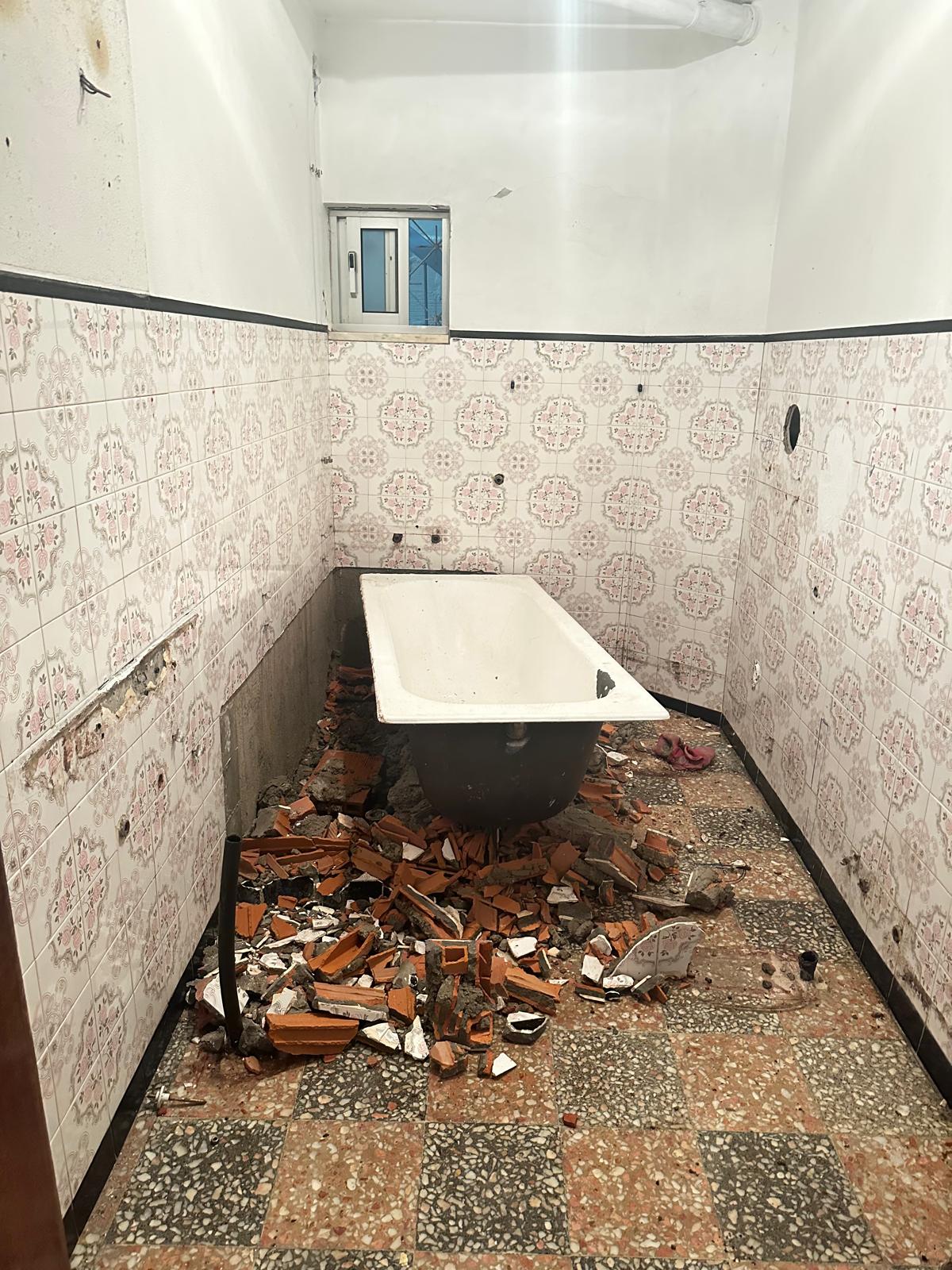 - Revestir paredes da casa de banho de cima a baixo, mudar as loiças todas, retirar banheira e aplicar base para duche.