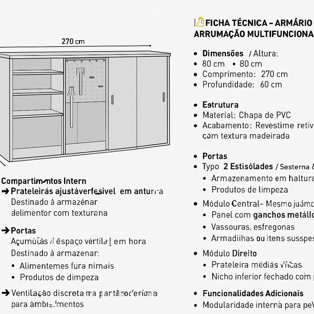 🧺 Prateleiras ajustáveis à esquerda para alimentação de animais e produtos de limpeza