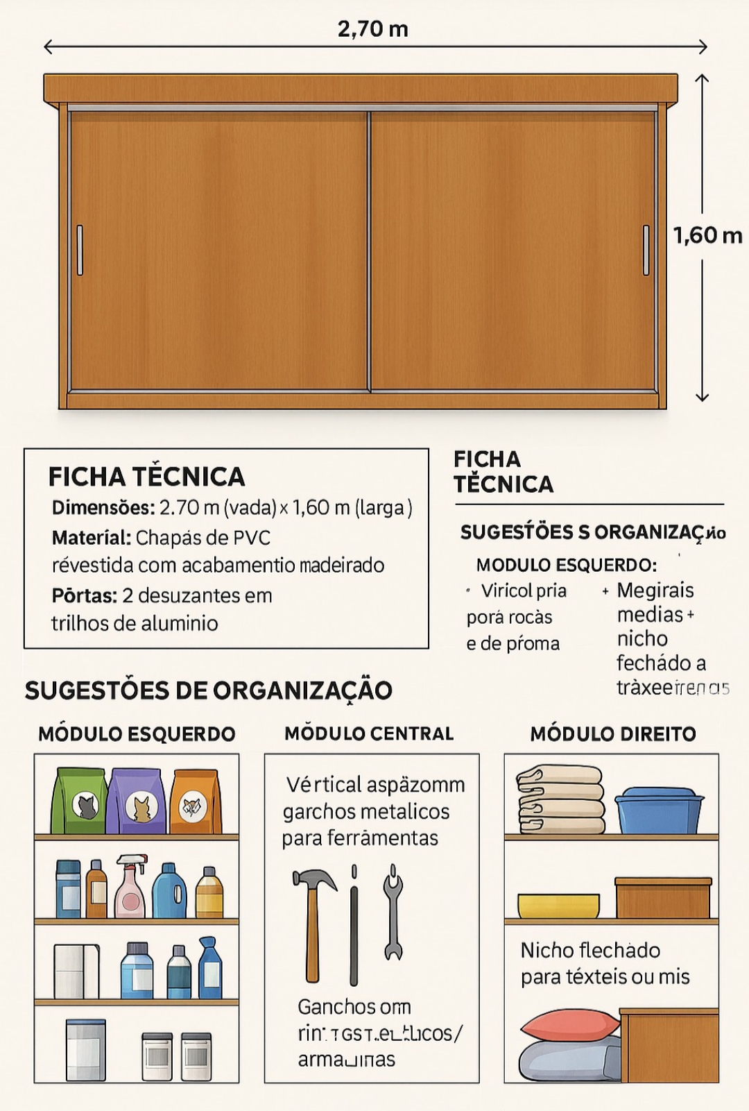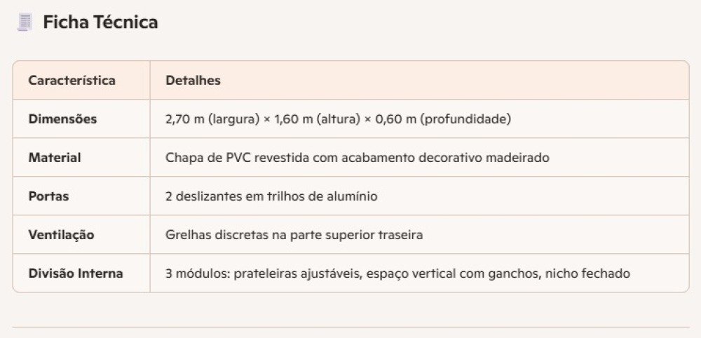 📐 Dimensões: 2,70 m de largura × 1,60 m de altura × 0,60 m de profundidade