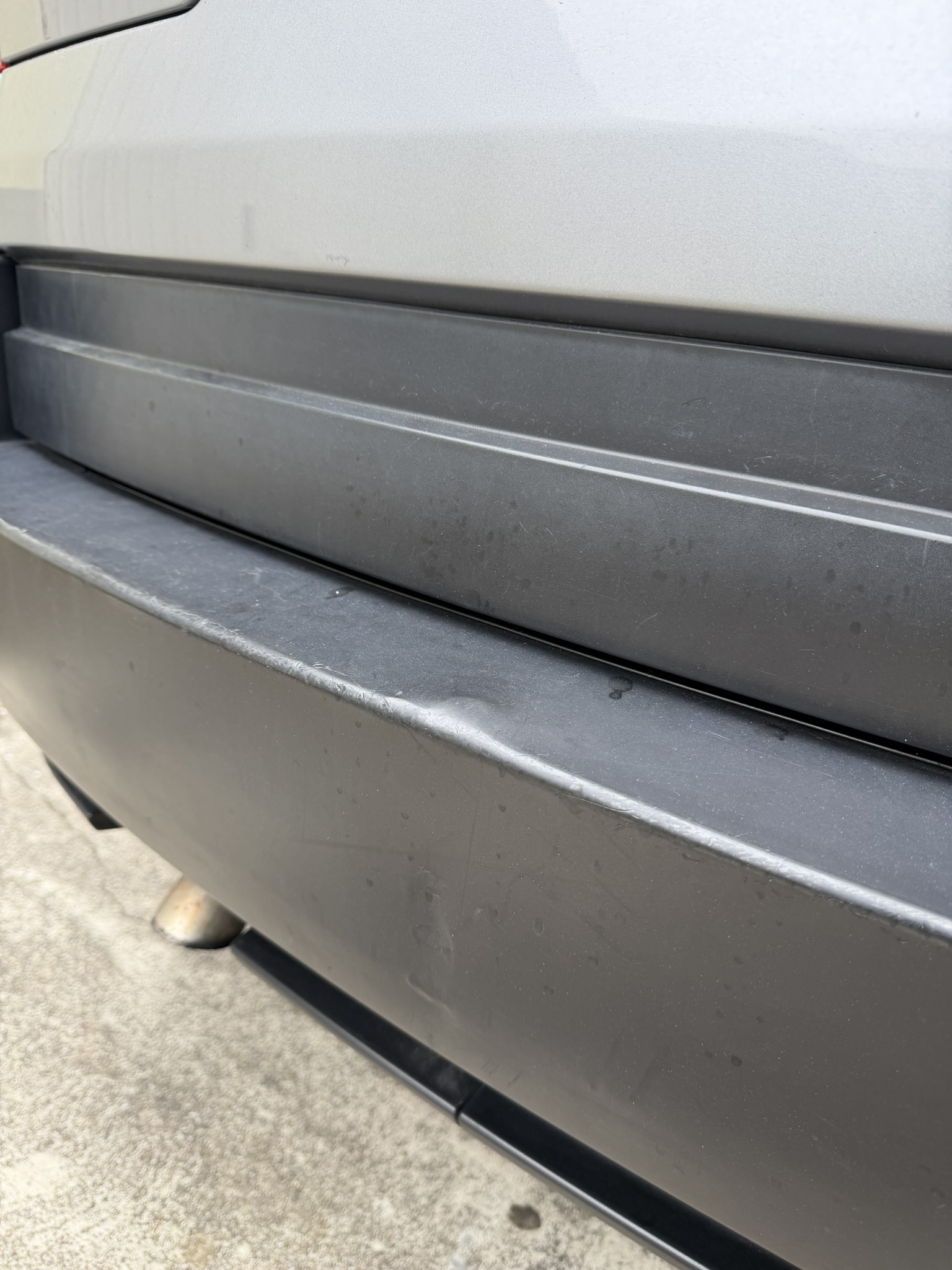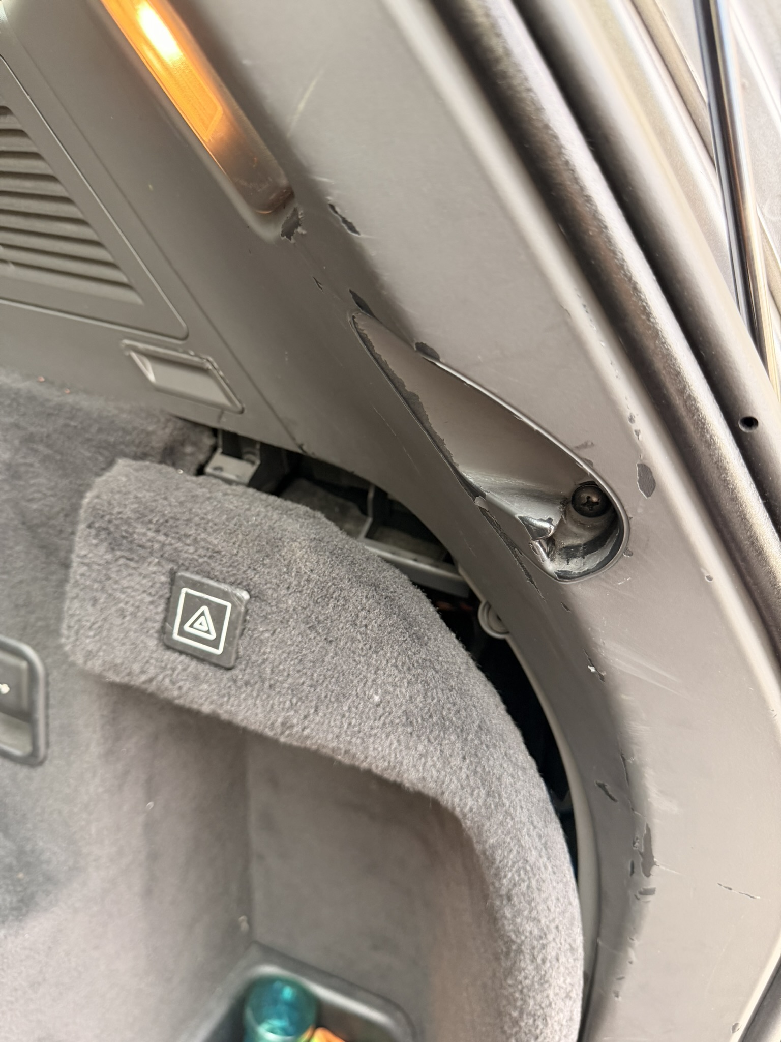 A pega para abrir o fundo da mala do carro também está partido e não fecha totalmente.