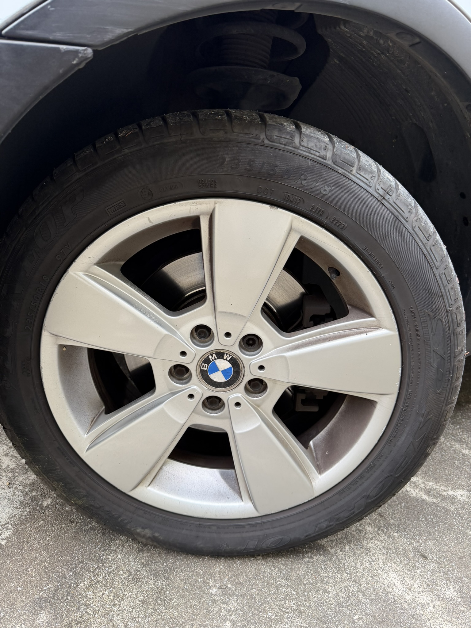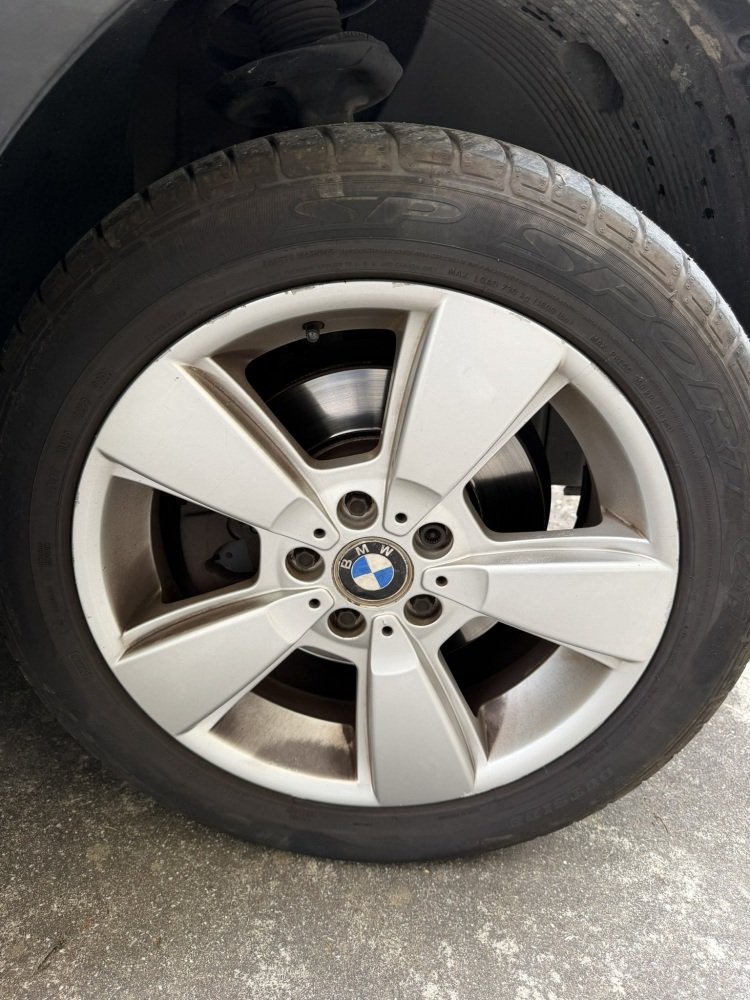 Os pneus foram trocados recentemente, mas as jantes já estão um pouco gastas e deveriam de ser arranjadas, limpas e repintadas.