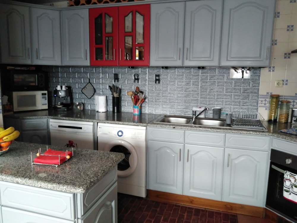 A minha cozinha é muito datada. Odeio os azulejos , pintei a mobília mas não era bem aquilo que queria, e ainda falta tapar algum cano. Enfim gostava de ter uma cozinha mais moderna.