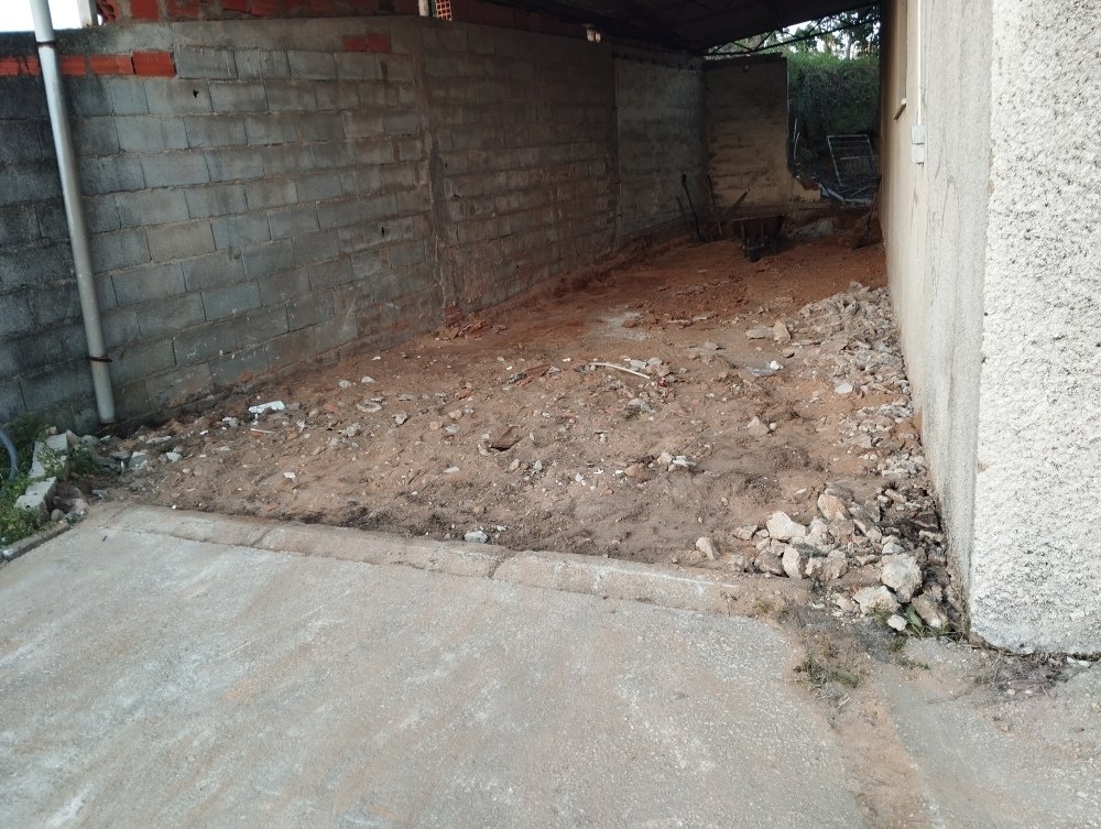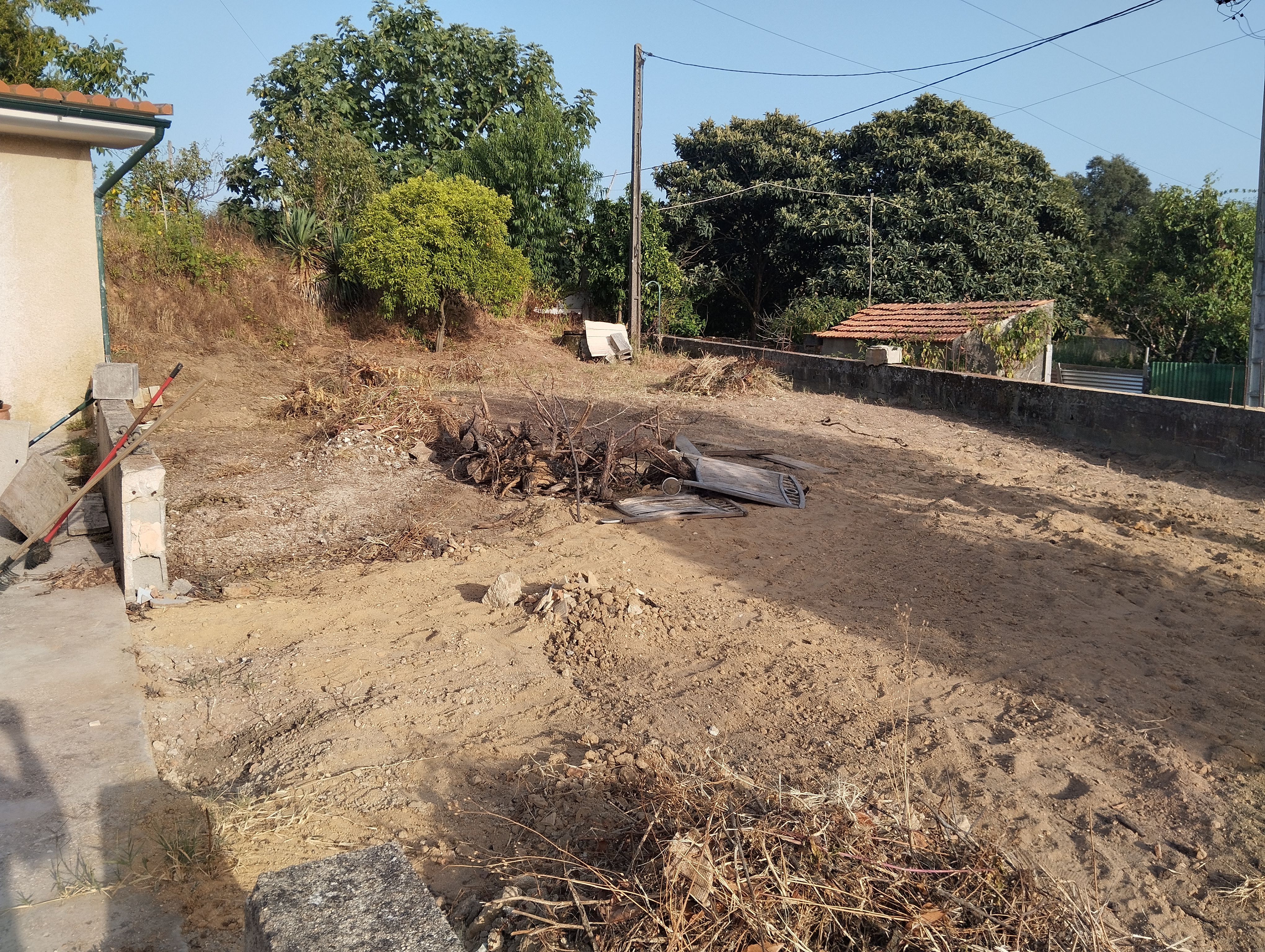 Chegamos finalmente ao exterior, ao tão sonhado jardim. Por agora, ainda é apenas terra batida, mas é o espaço onde tudo vai ganhar vida. Apesar de simples, já conseguimos imaginar o relvado, as flores e a zona de lazer. É o toque final que falta para a casa estar completa, e cada passo de remodelação até aqui prepara o terreno para transformar este espaço numa verdadeira área de descanso e alegria.