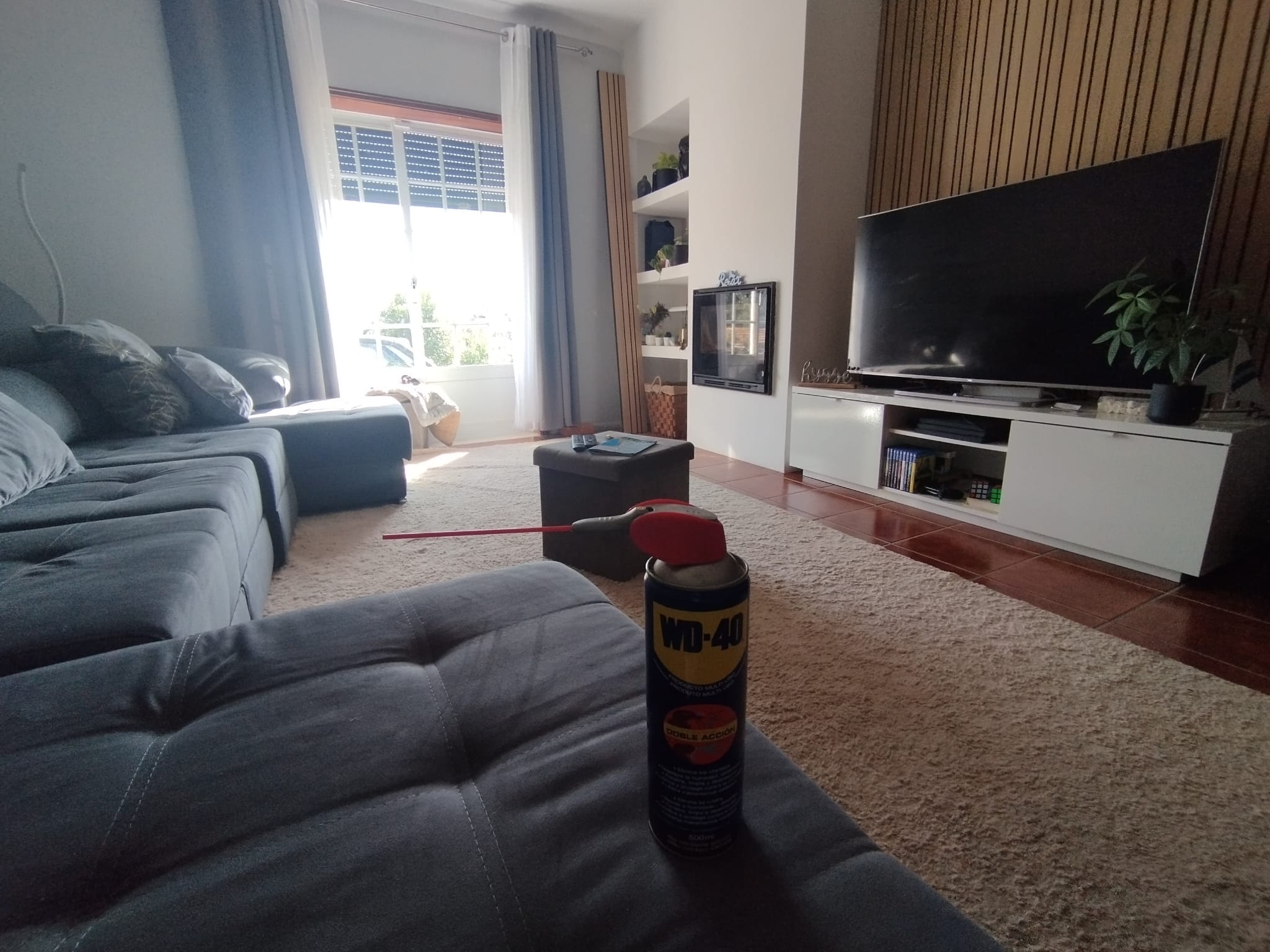 No início, a porta gritava em protesto, rangendo como se estivesse a ensaiar para um filme de terror. A minha primeira missão foi domar esses sons assombrados — e o WD-40 tornou-se o maestro da sinfonia do silêncio. A sala de estar, por sua vez, resumía-se a um puff e a uma tábua de passar a ferro, improvisadas como mesa para o computador. Um verdadeiro “escritório improvisado” em miniatura! Cada dia era um desafio de criatividade: como trabalhar, estudar ou simplesmente relaxar num espaço tão mínimo? Com a remodelação, conseguimos transformar a sala num espaço confortável e funcional, onde finalmente dá gosto passar tempo, com os nosso amigos de 4 patas, sem recorrer a soluções de sorte - apenas a soluções que sabemos perfeitamente o ótimo desfecho final - WD40.