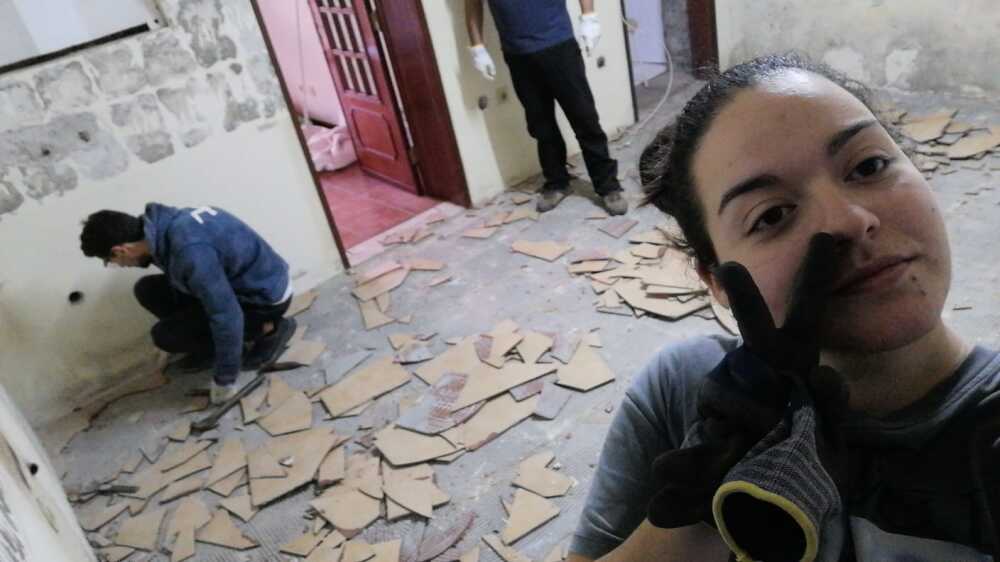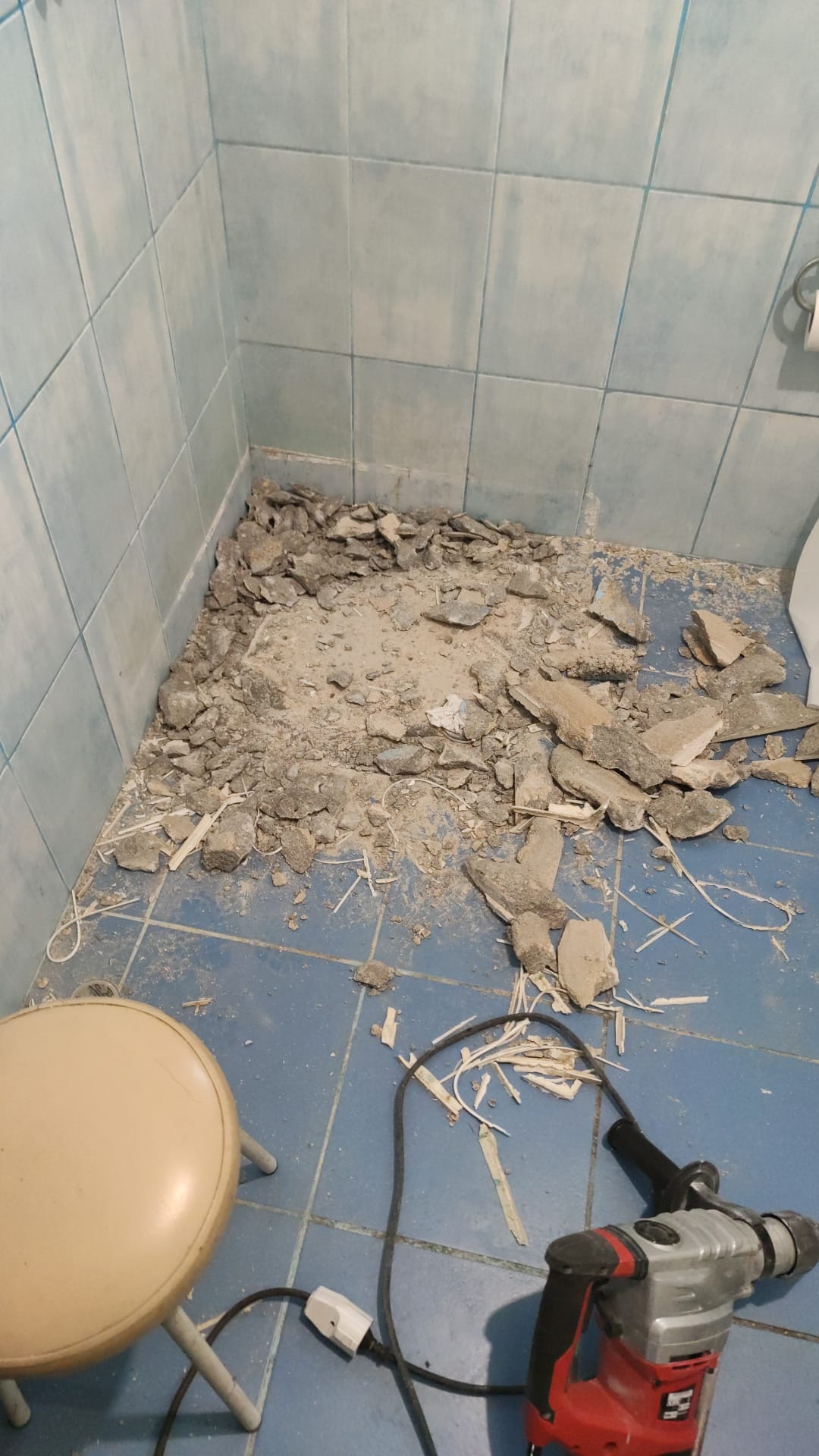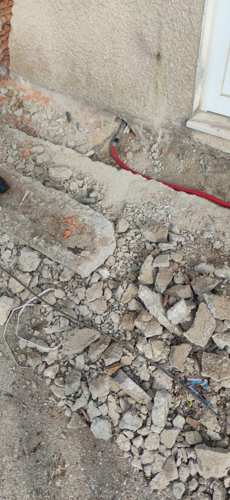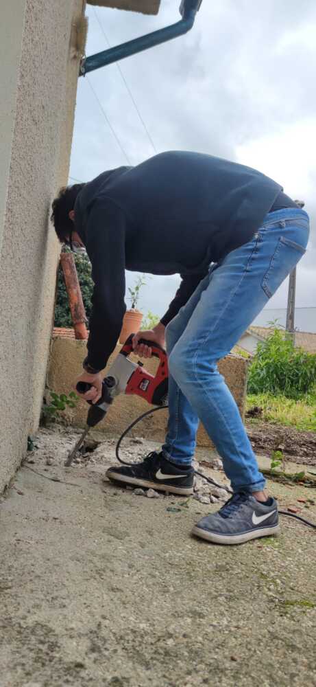 Tudo começou com a missão de abrir uma faixa no chão para passar os tubos da canalização. Martelo, pó e muito barulho — parecia que estávamos a escavar um túnel secreto. A certa altura já não dávamos conta do recado, e tivemos de pedir reforços. No fim, o buraco não levava a um tesouro escondido, mas sim à base da remodelação: água a correr como deve ser.