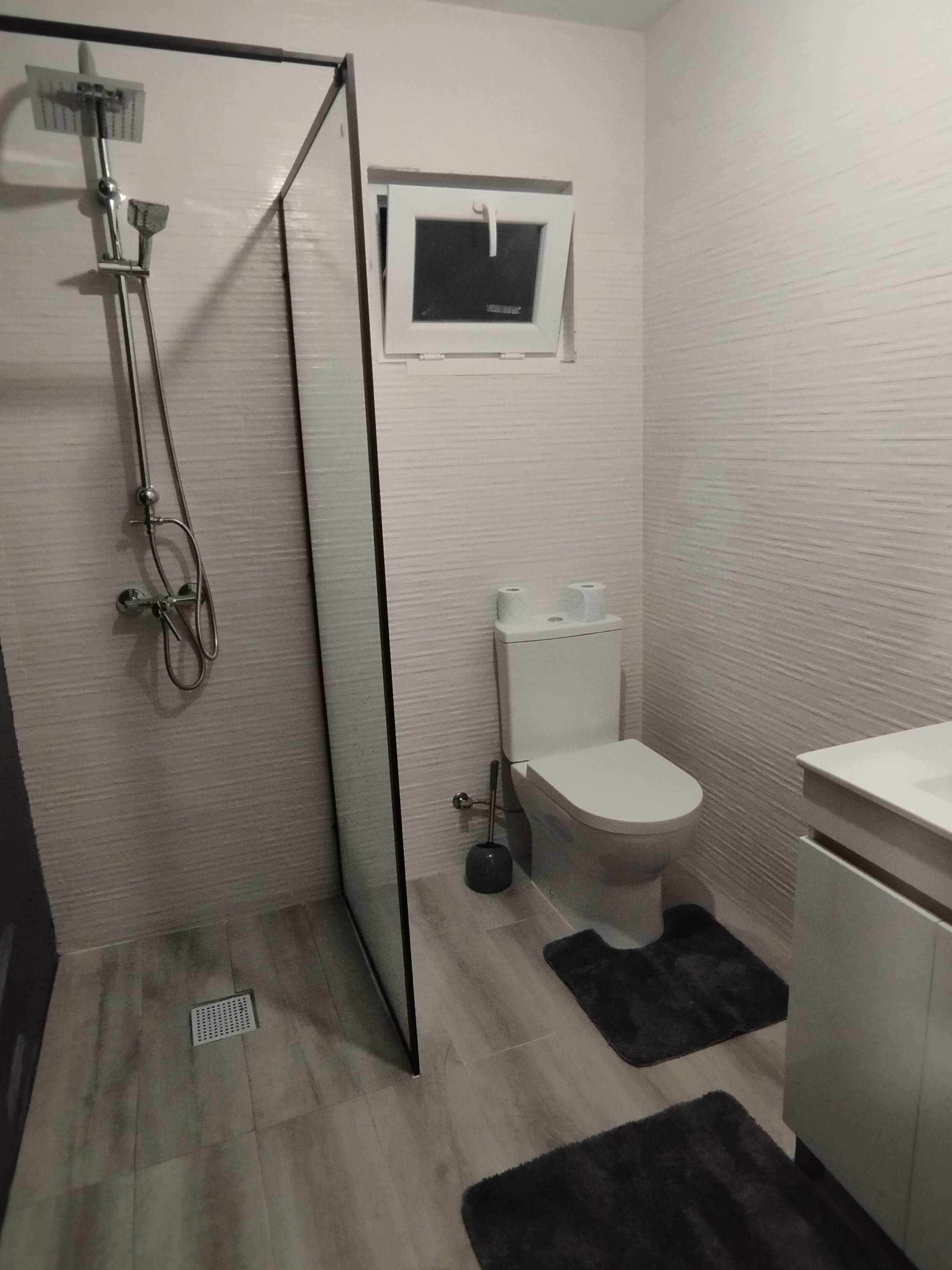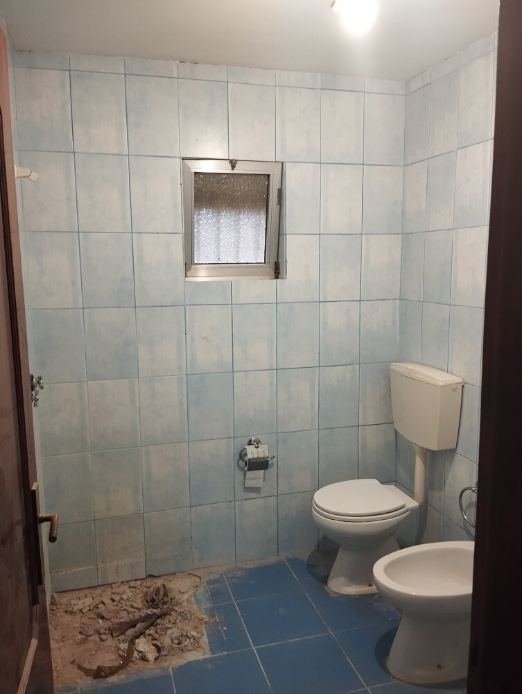 Depois da cozinha, veio o WC. Aqui não era só apertar parafusos: tivemos de tirar tudo o que lá estava. Canos, azulejos, louças… tudo! Parecia que tínhamos entrado numa pequena obra arqueológica, mas ao contrário de descobrir tesouros antigos, estávamos a abrir espaço para um WC totalmente novo. Com algum cuidado, força de vontade e umas borrifadas de WD-40 nos encaixes mais teimosos, conseguimos reconstruir o espaço do zero. Finalmente, a casa já tinha um WC pronto para usar — e respirar aliviados foi inevitável.