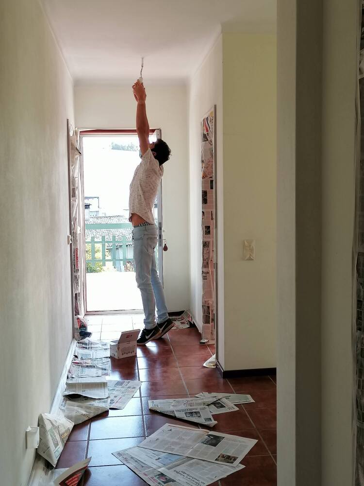Nem tudo foram projetos gigantes ou demolições épicas. Pelo caminho houve também aquelas tarefas que parecem simples, mas que fazem toda a diferença: pintar caleiras, montar móveis (com a ajuda preciosa do meu pai), colocar lâmpadas, dar cor às paredes ou rebocar muros cansados. Cada uma destas pequenas vitórias foi aproximando a casa do lar que sempre sonhámos. Porque no fim, são estes detalhes que completam a história — discretos, mas indispensáveis.