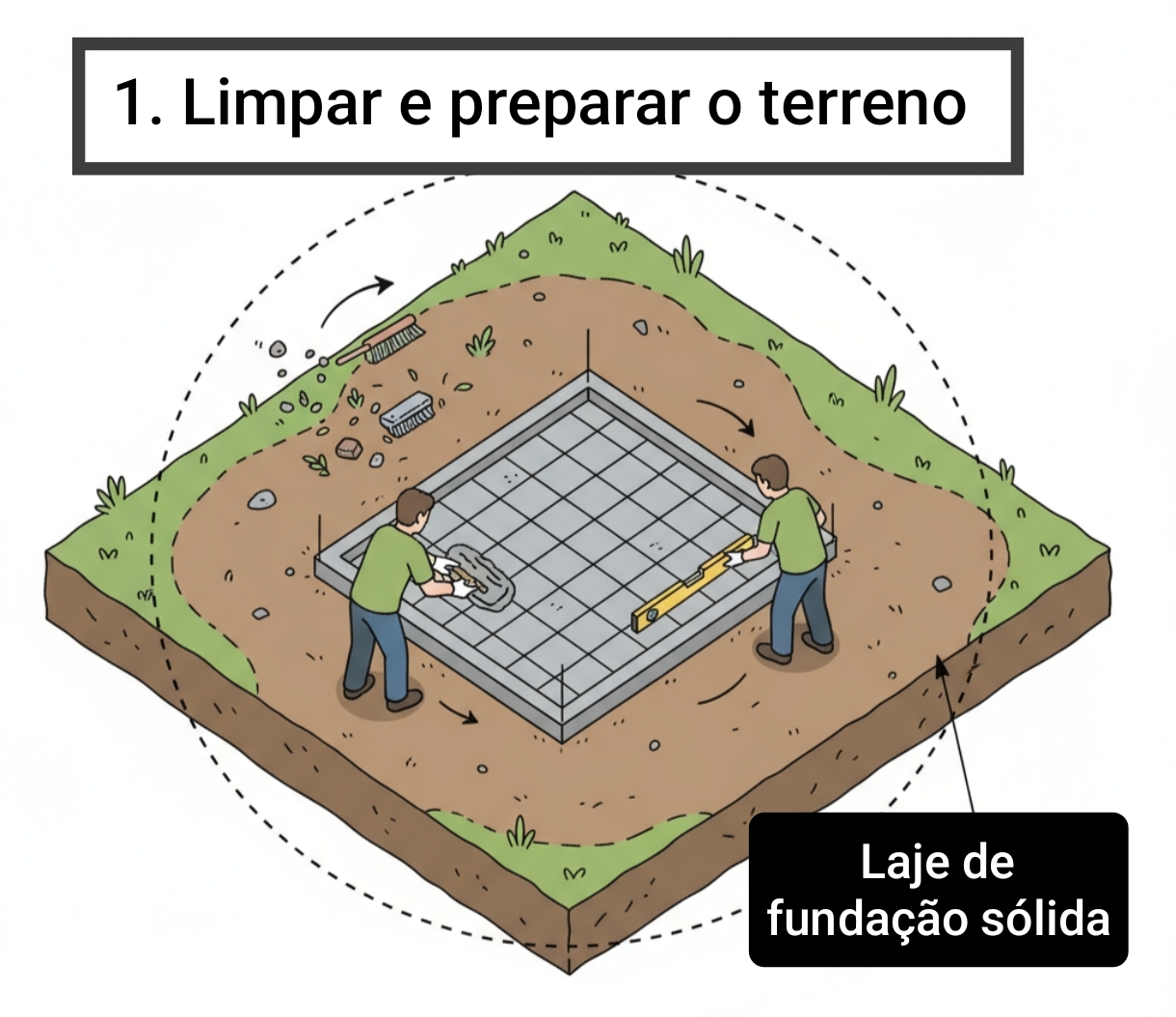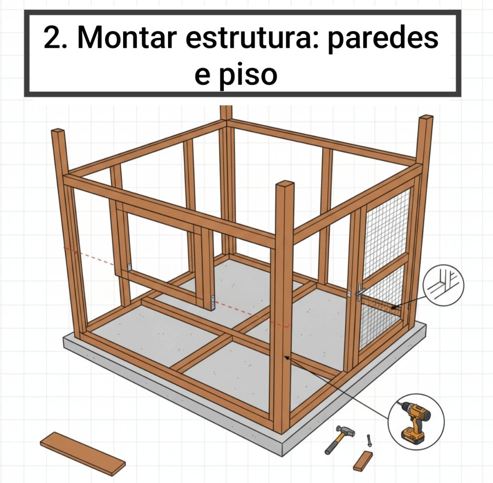- Construir uma fundação sólida com laje de concreto, garantindo proteção contra predadores escavadores e um piso nivelado.