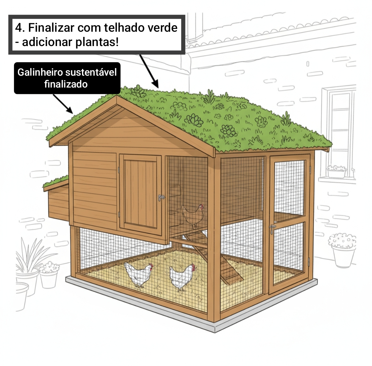 - Utilizar madeira tratada para montar a base do galinheiro.