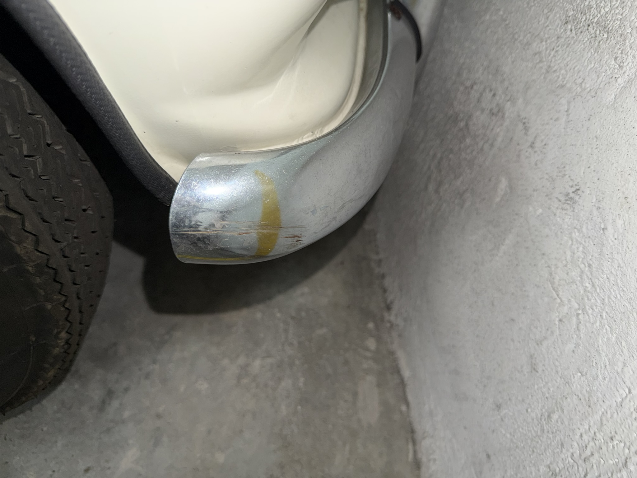 Por fim achamos que um polimento na pintura poderá trazer alguma vida ao carro e a restauração dos cromados irá dar um detalhe e mostrar que é um carro bem cuidado. Apenas um pormenor no para-choques traseiro vai ser mantido. Quando o carro era do meu pai quando era mais jovem, ele emprestou o carro à minha mãe pois o dela estava na oficina, e infelizmente a minha mãe não estando habituada, fez uma marcha atrás contra um poste e deixou o para-choques com um formato de um S, a inicial da minha mãe. O meu pai diz que foi a maneira de a minha mãe marcar o seu carro.