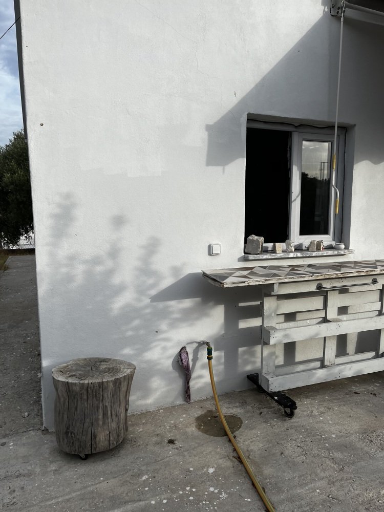 Um ponto de água será criado para rega prática e também como elemento decorativo, podendo incluir uma torneira em estilo rústico/moderno.
