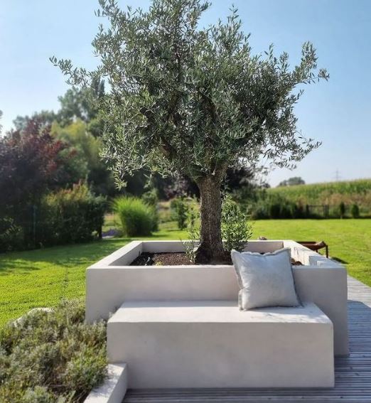 Ao longo do espaço, surgirão floreiras em cimento de linhas modernas, permitindo a plantação de vegetação variada que dará cor, textura e frescura ao jardim.