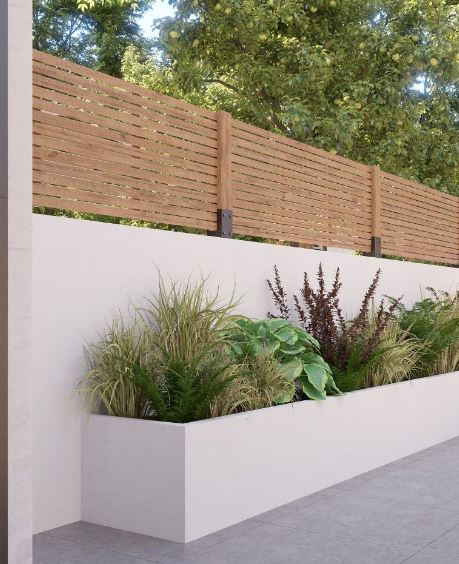 Uma vedação em madeira, combinada com muros já existentes, trará privacidade e um toque natural, tornando o jardim mais aconchegante.