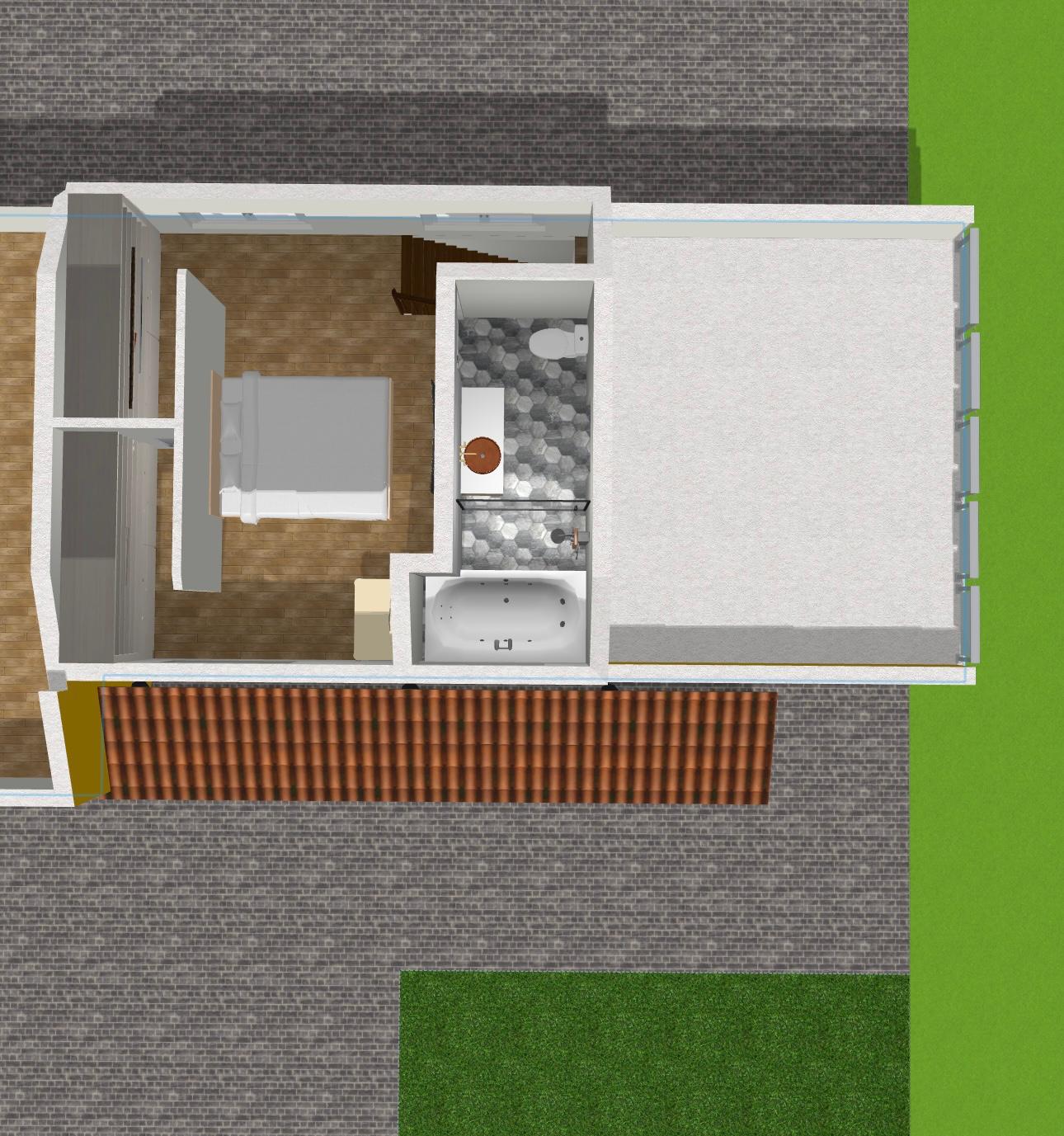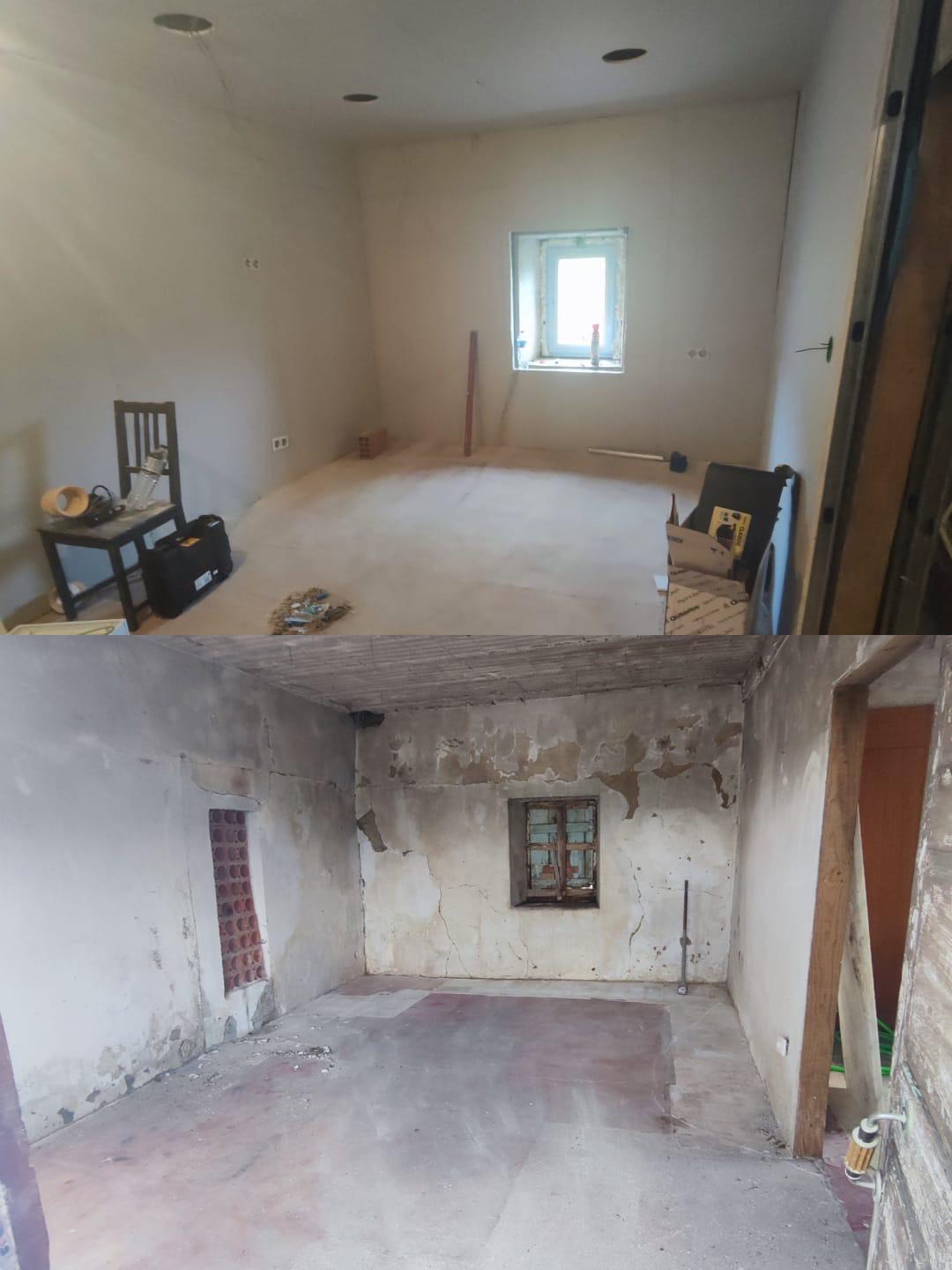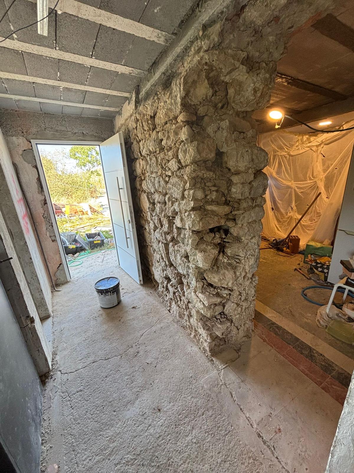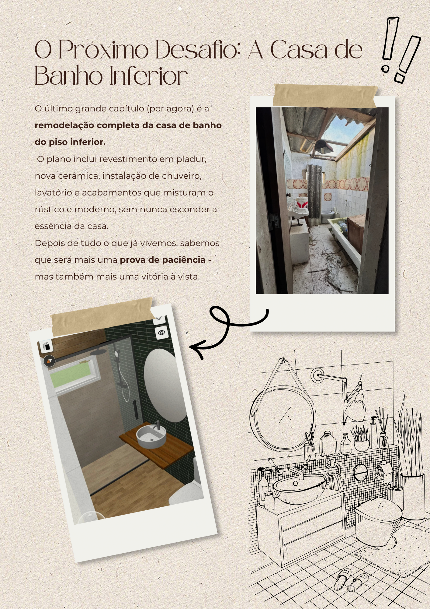 O plano inclui revestimento em pladur, nova cerâmica, instalação de chuveiro, lavatório e acabamentos que misturam o rústico e moderno, sem nunca esconder a essência da casa.
