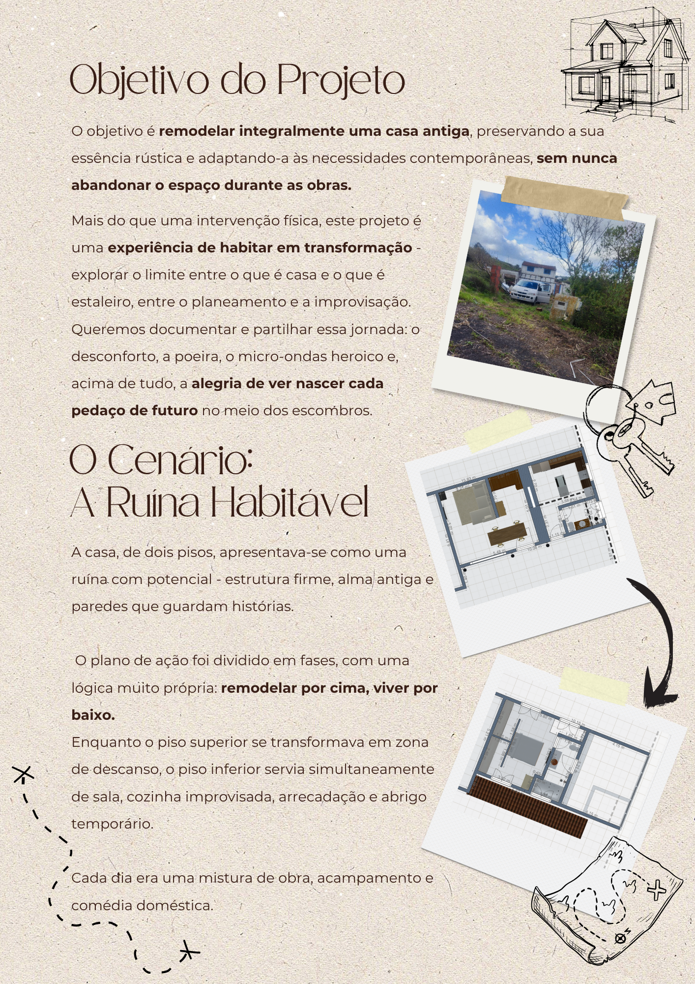 Habitar uma ruína em transformação é uma lição de humildade e paciência: ensina-nos que o conforto é relativo, a poeira é inevitável, e o lar é uma conquista diária.