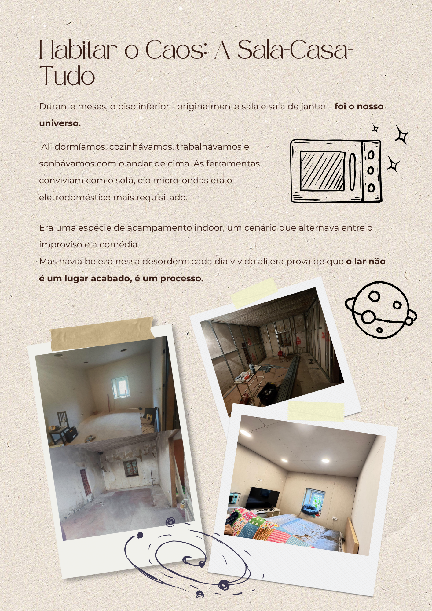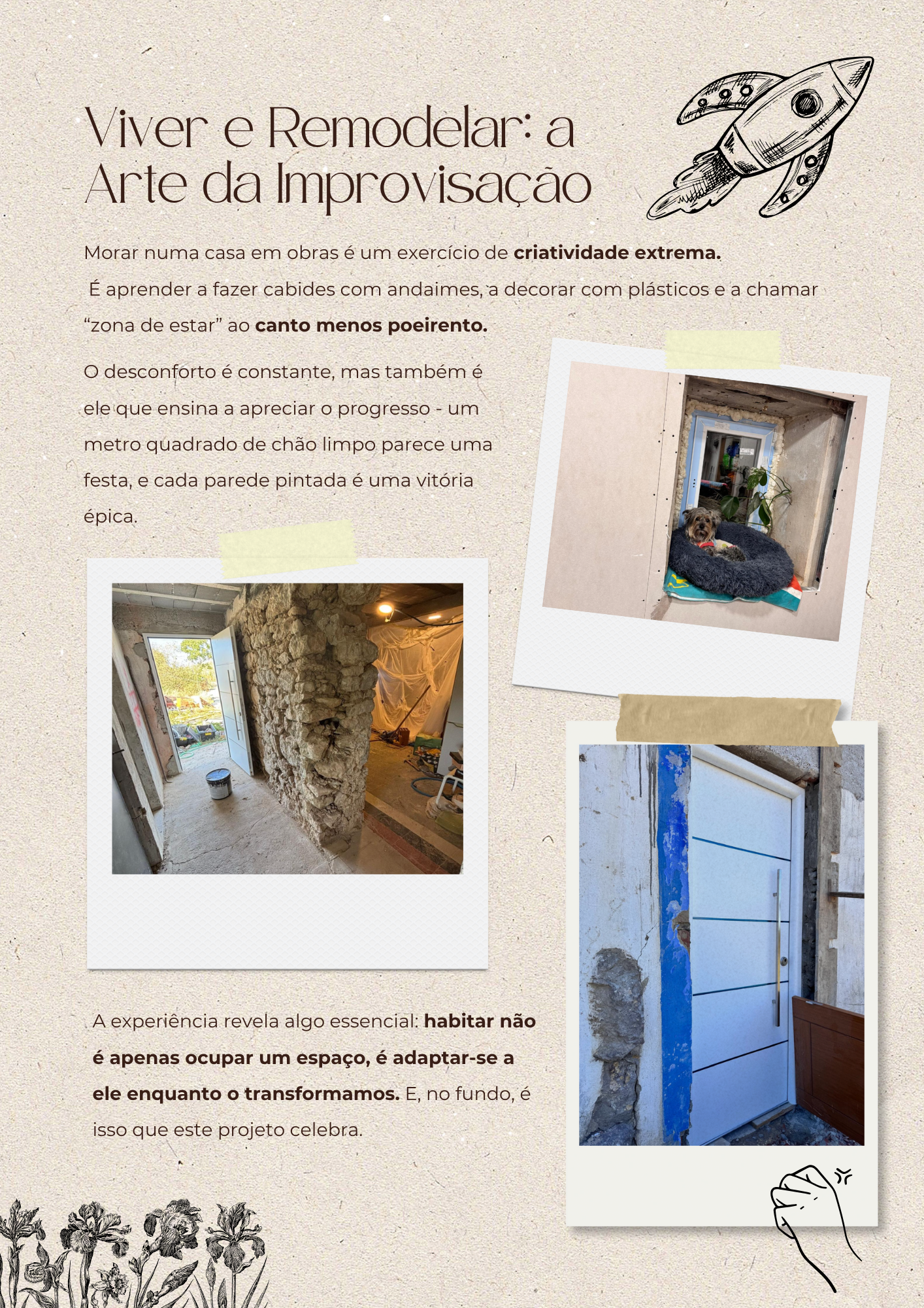 Mais do que uma intervenção física, este projeto é uma experiência de habitar em transformação - explorar o limite entre o que é casa e o que é estaleiro, entre o planeamento e a improvisação.