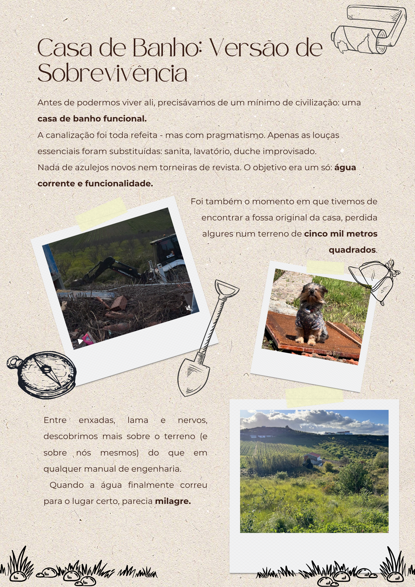 Foi também o momento em que tivemos de encontrar a fossa original da casa, perdida algures num terreno de cinco mil metros quadrados.