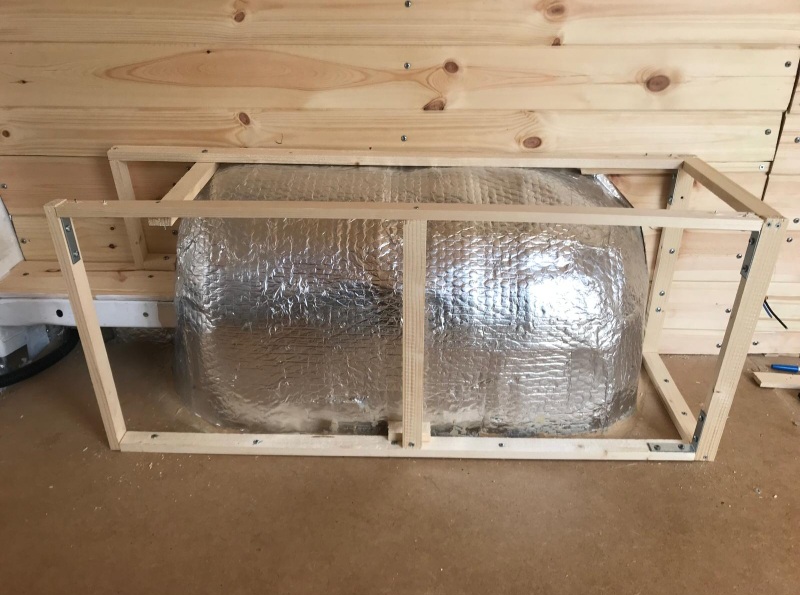 Fiz uma armação em madeira para proteger a caixa de rodas traseira,