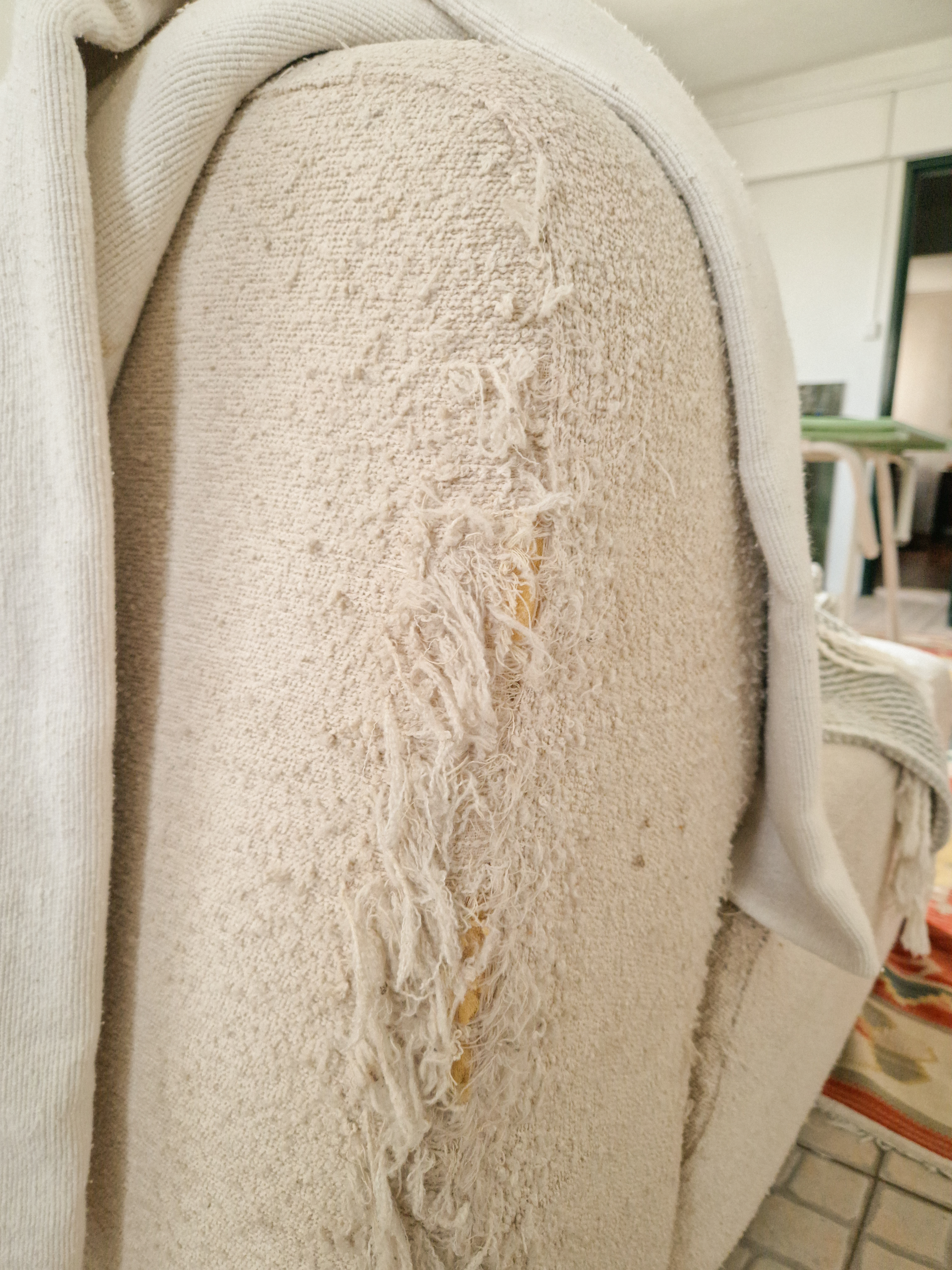 Tem o tamanho perfeito. Mas. Afunda mais que a economia em ano de crise. E está todo arranhado pelos gatos do antigo dono. Hora de atualizar para um sofá que não me engula!