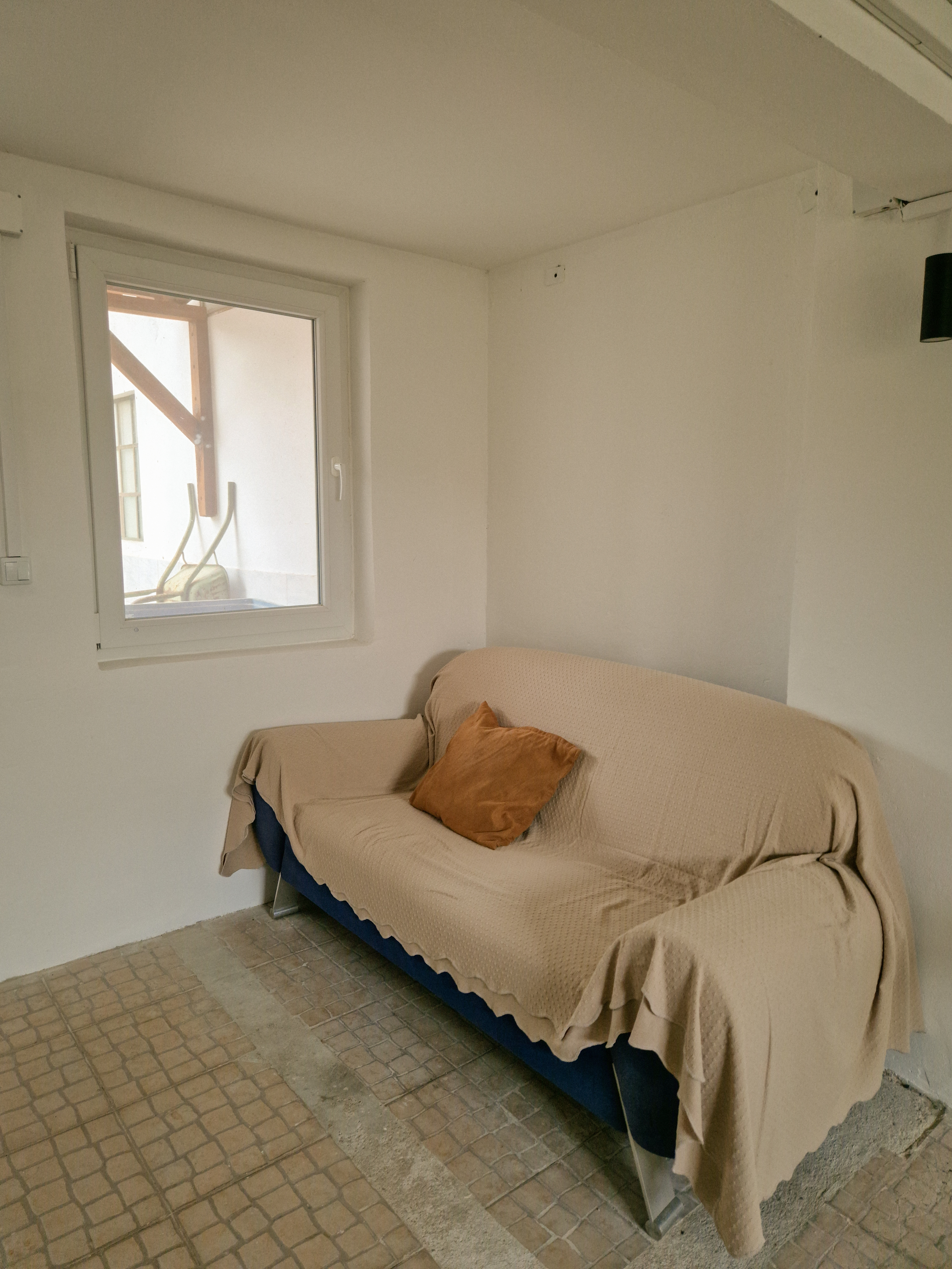 Num dos cantos da sala, há um espaço subaproveitado. Vou transformá-lo num banco embutido com arrumação por baixo.