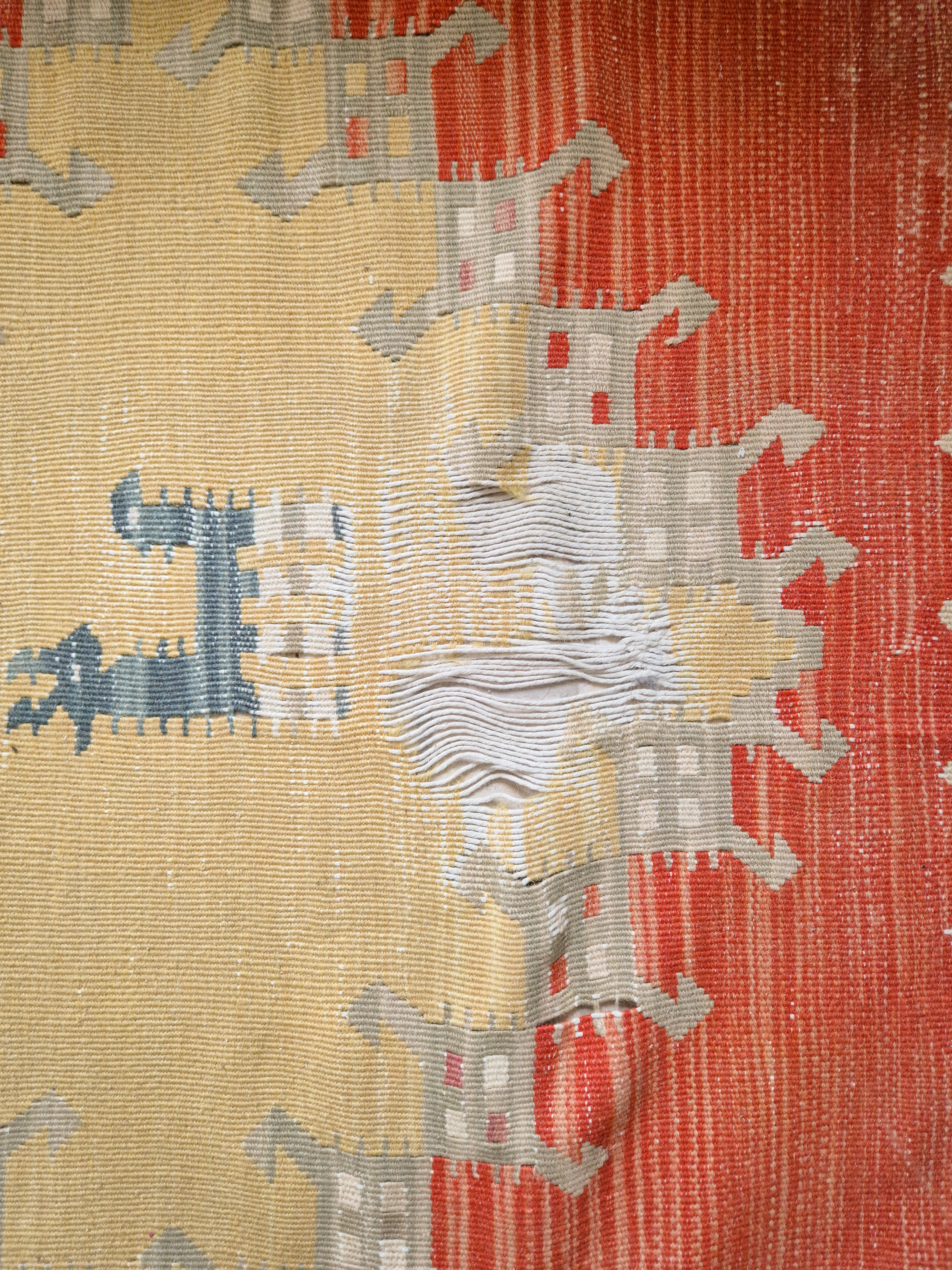 O tapete atual já foi rasgado e está na sua fase “eu juro que ainda sirvo”. Não serve.