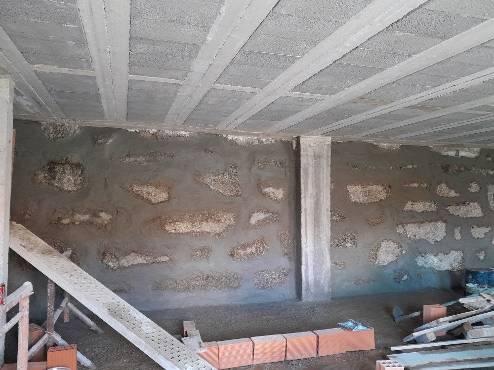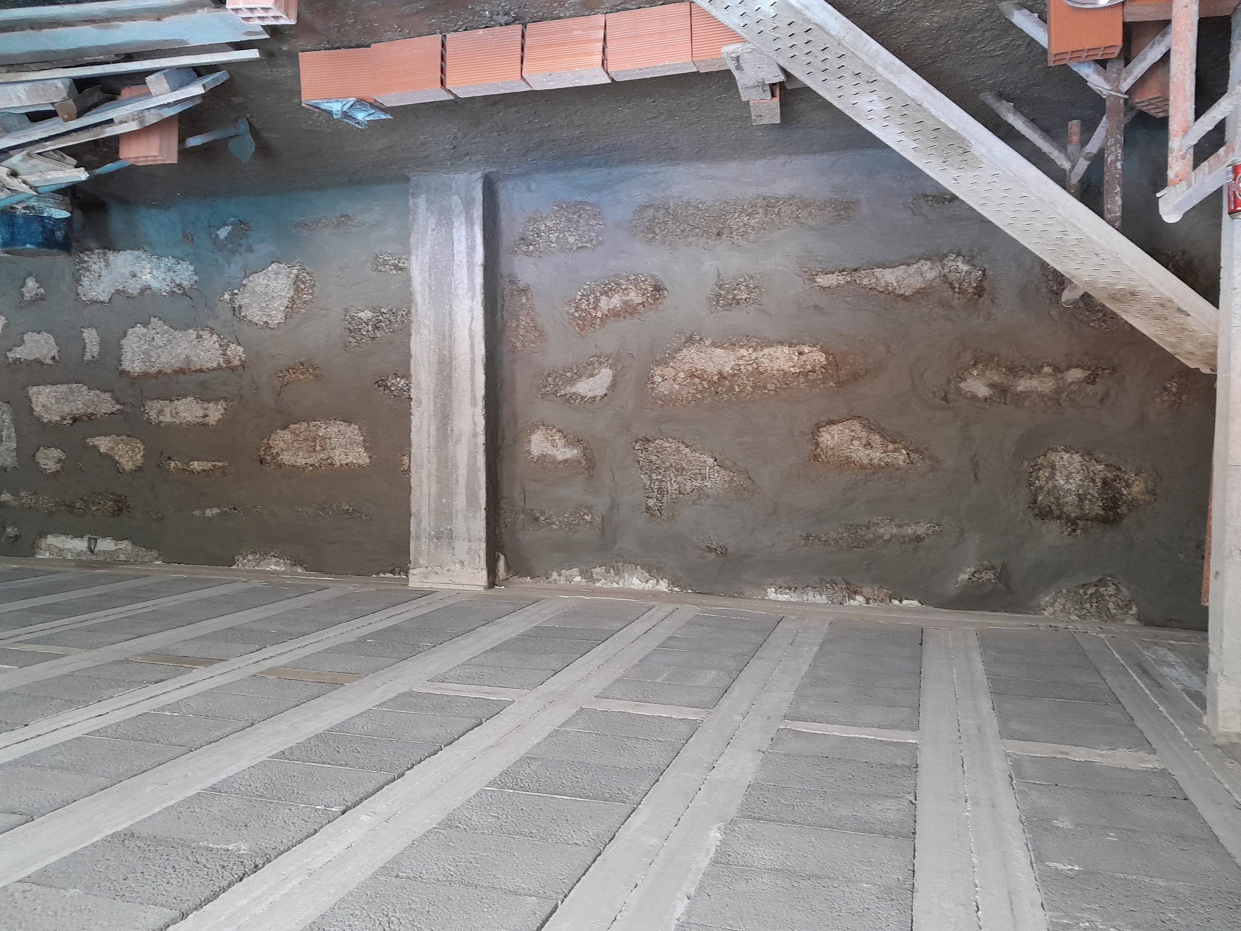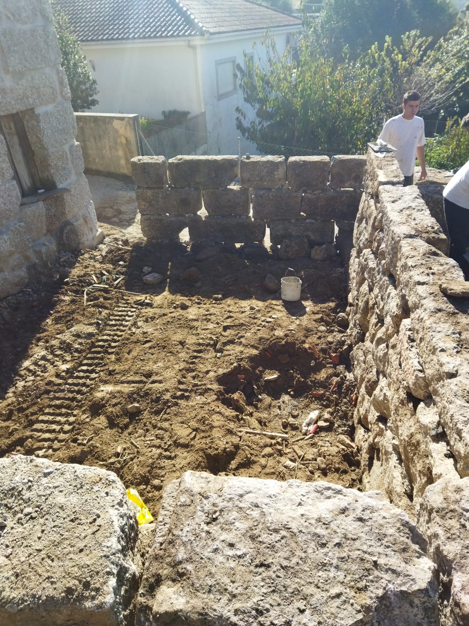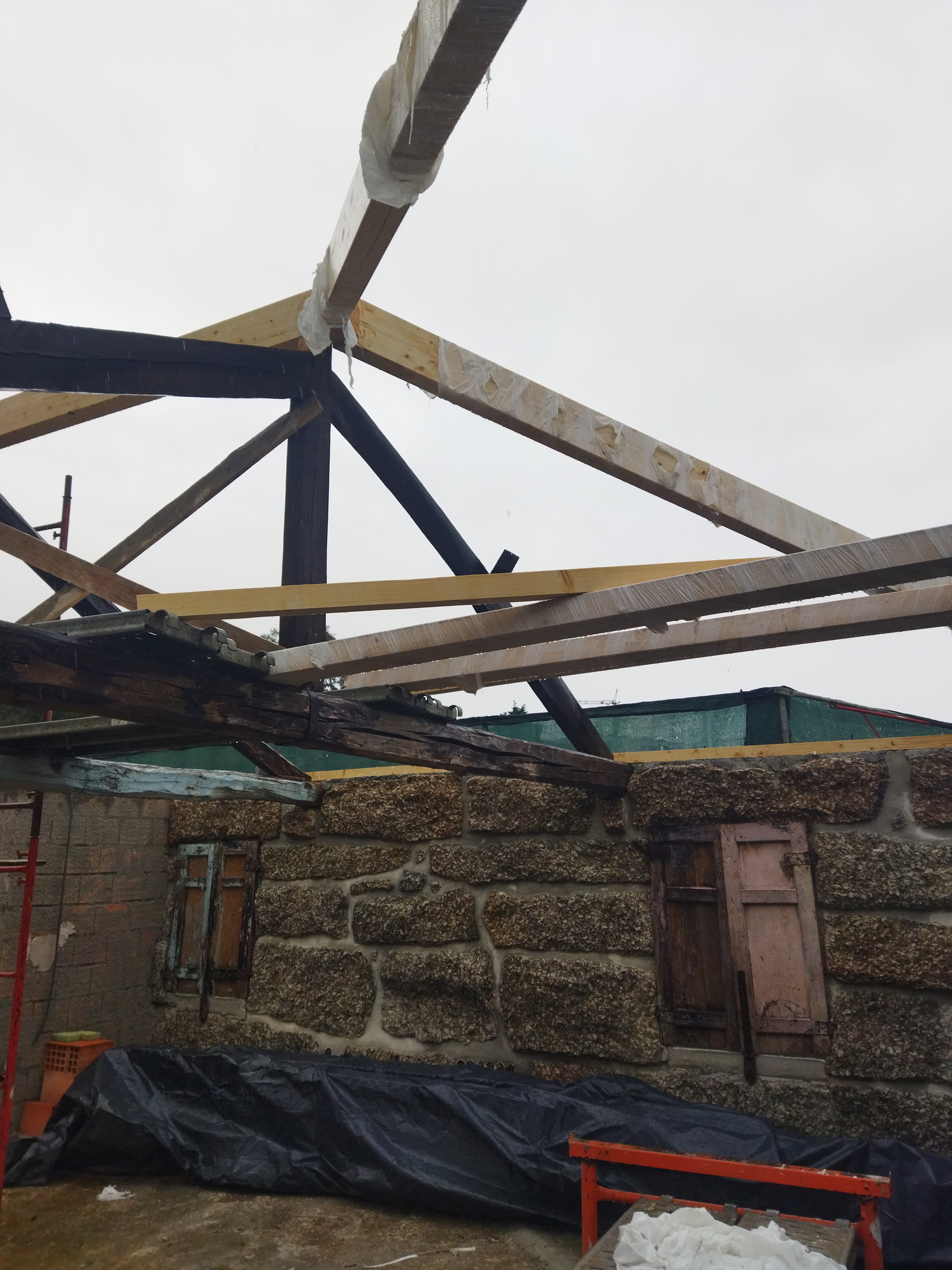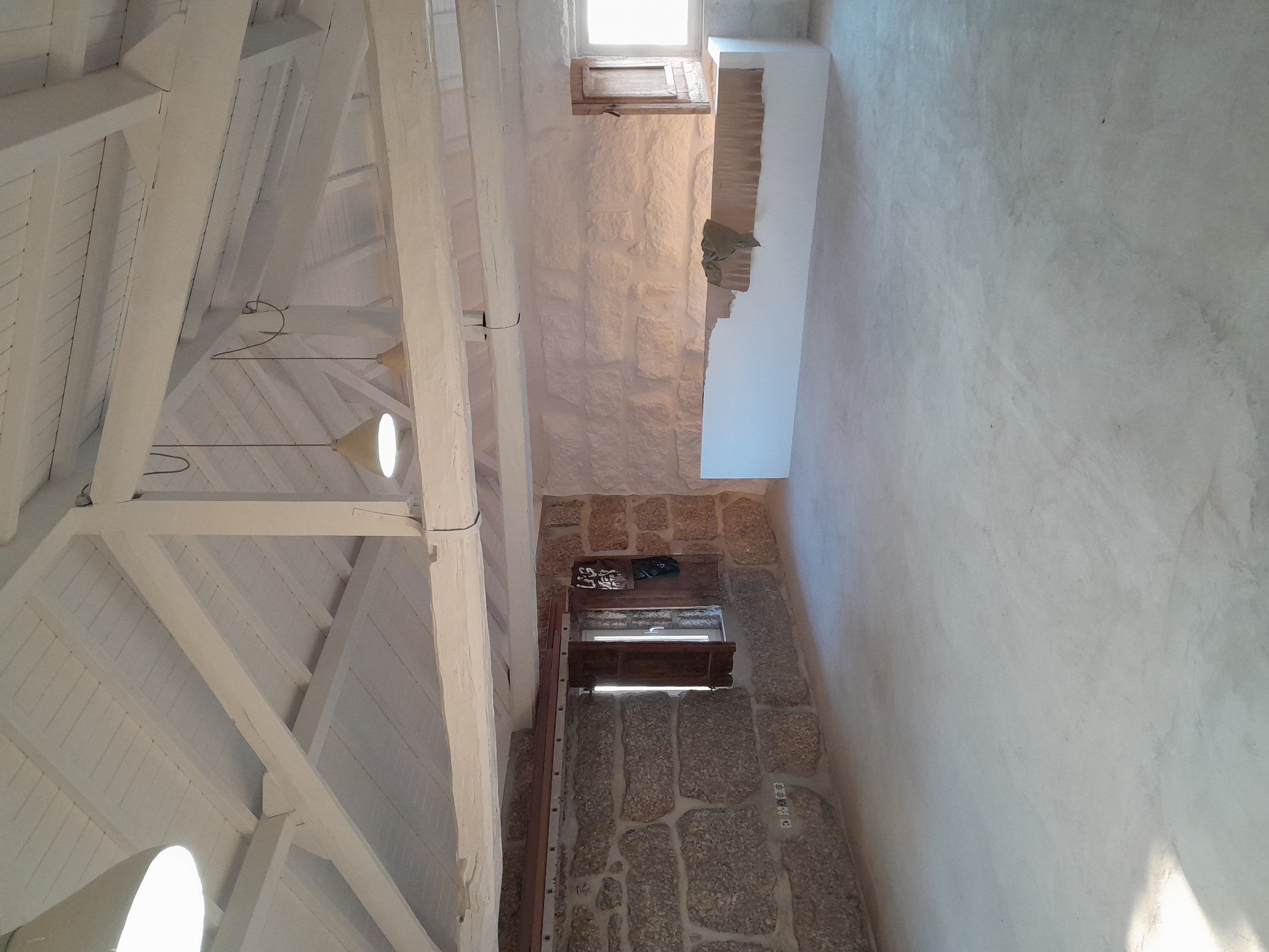 Os primeiros passos para a obra : Reconstrução do telhado e limpeza das pedras e fortelecimento das juntas.