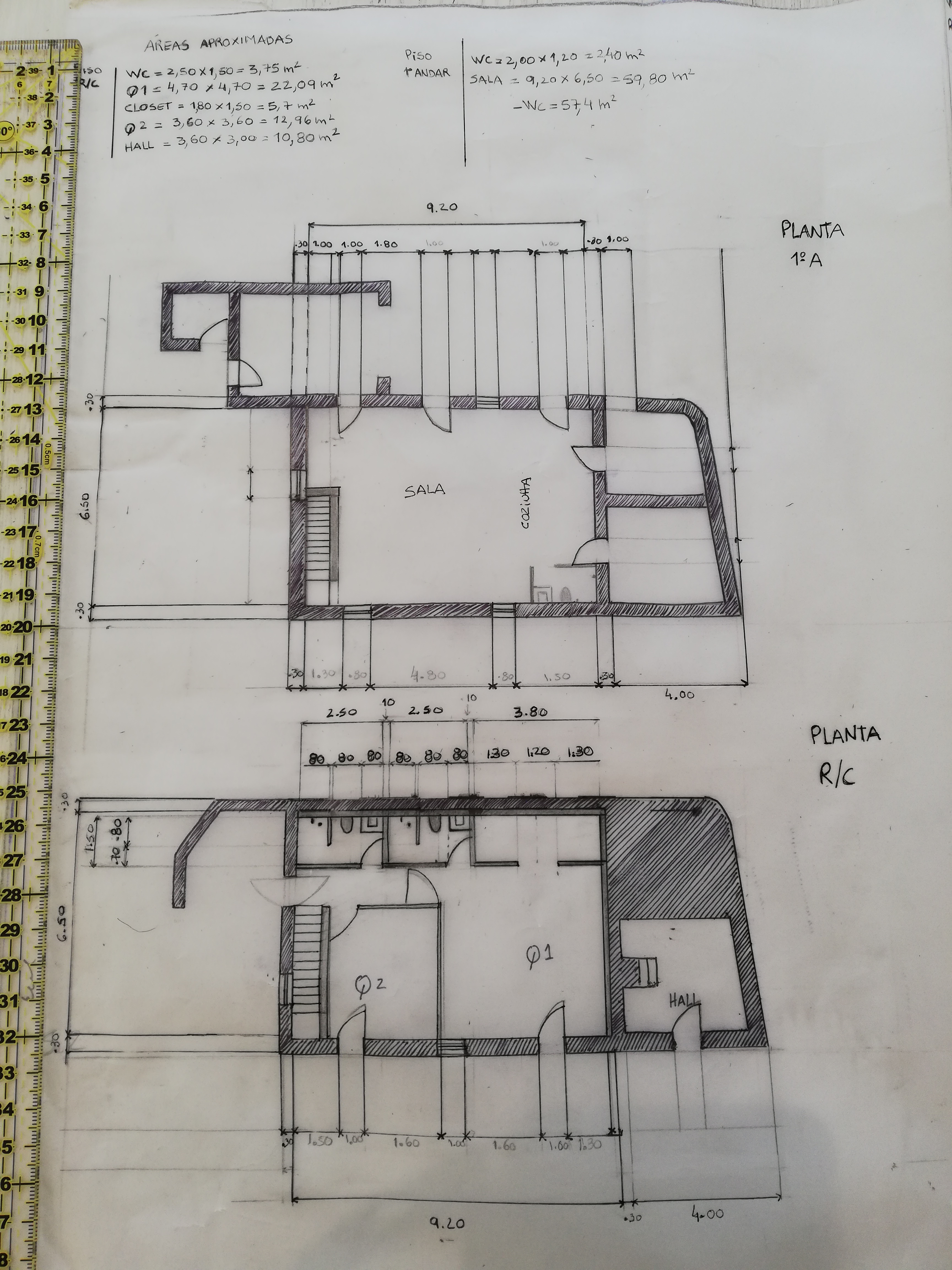 Realização das divivões do R/C.(2 quartos, 1 closet e 2 WCs)