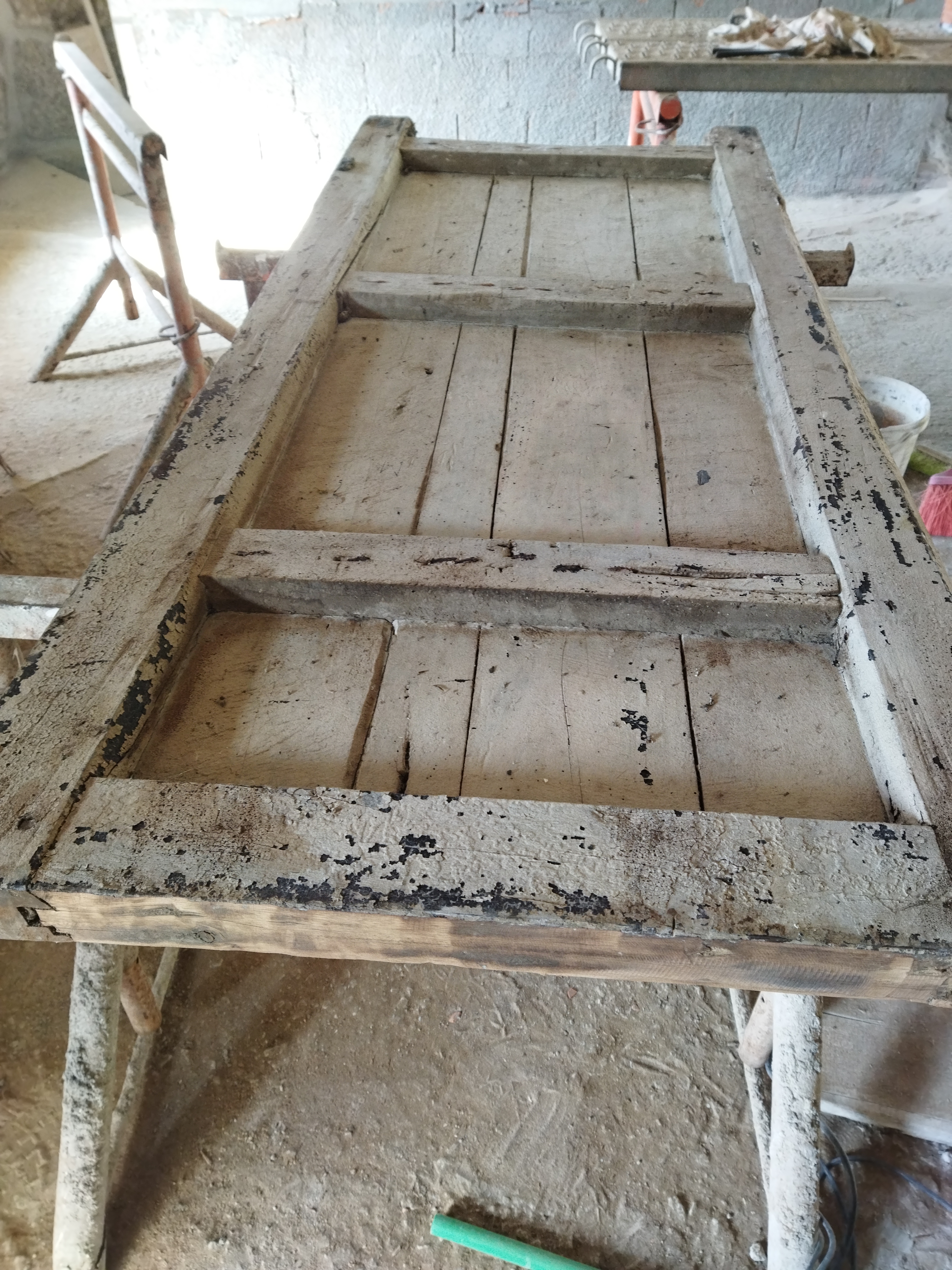 1_Exemplo da construção da mesa da sala com uma das portas da casa.