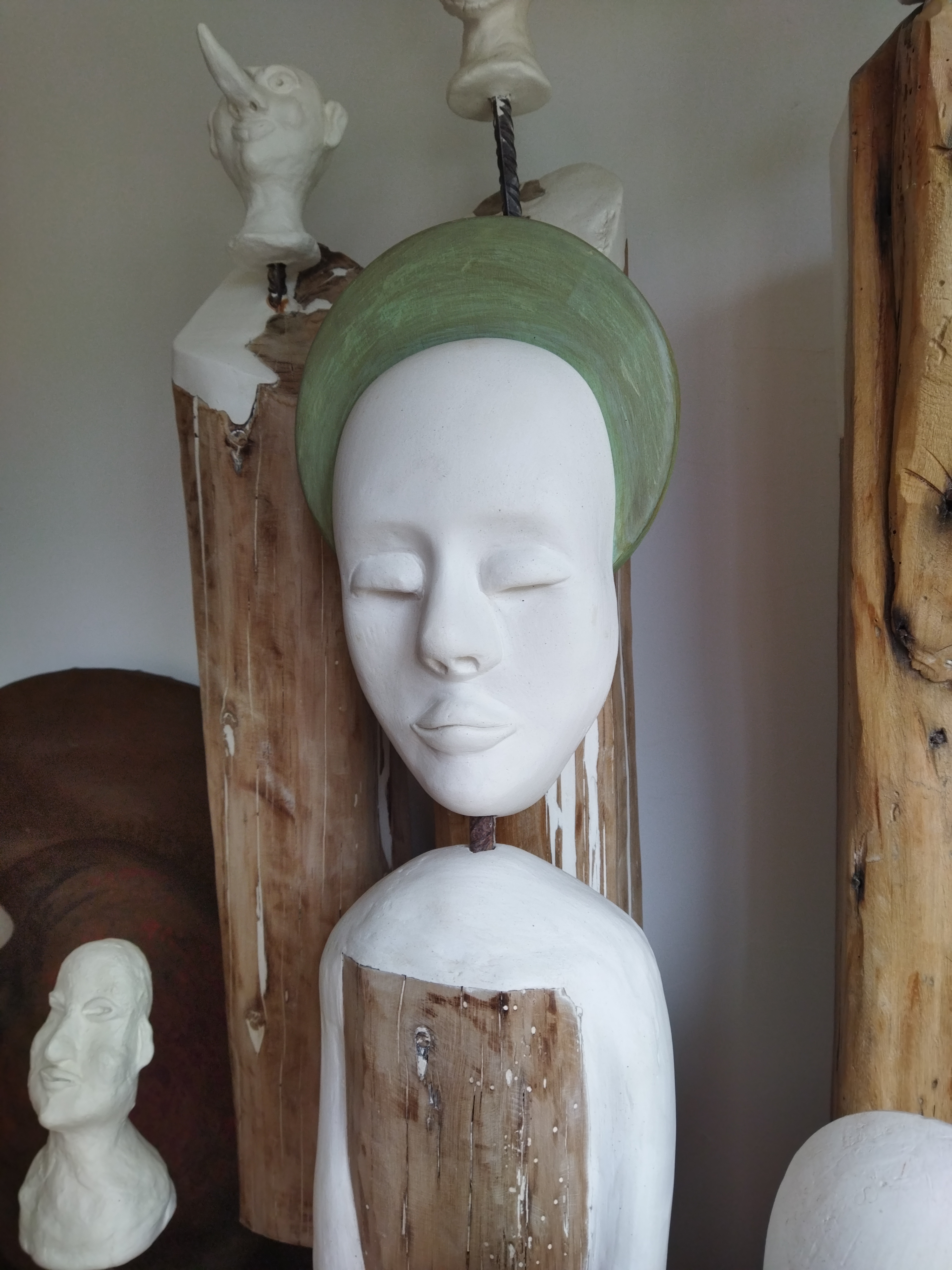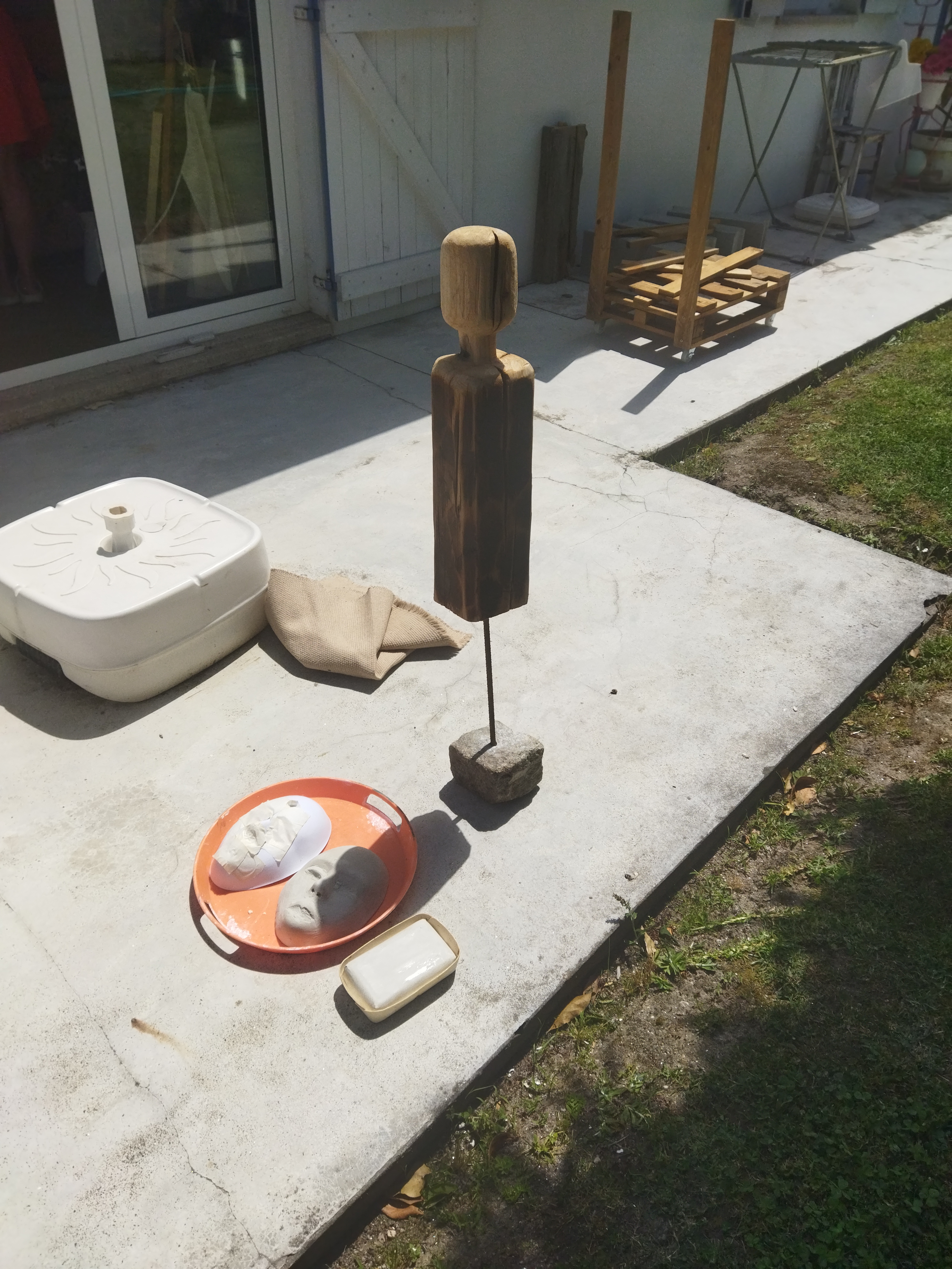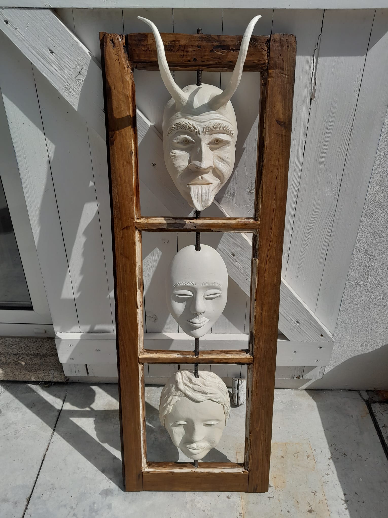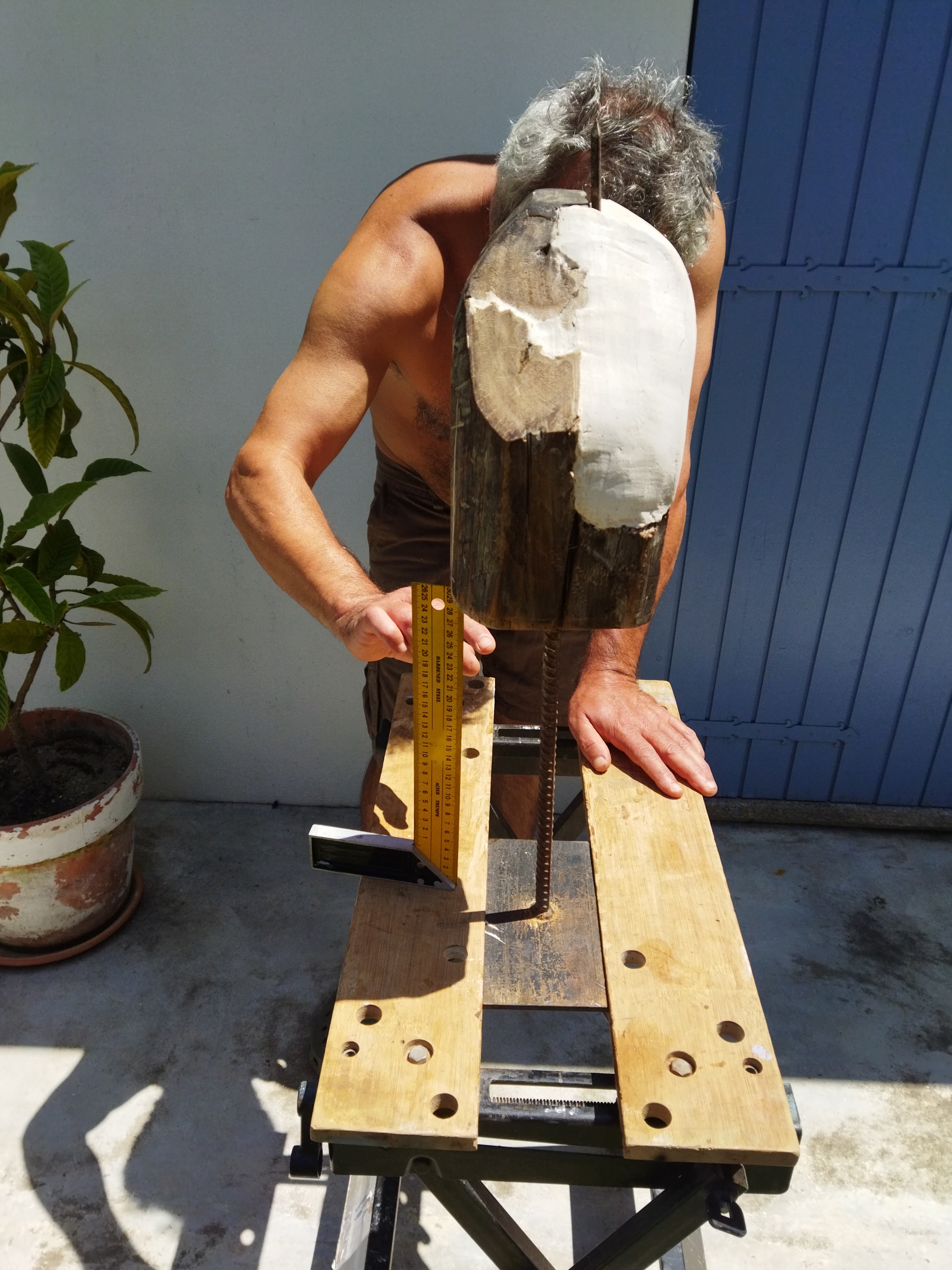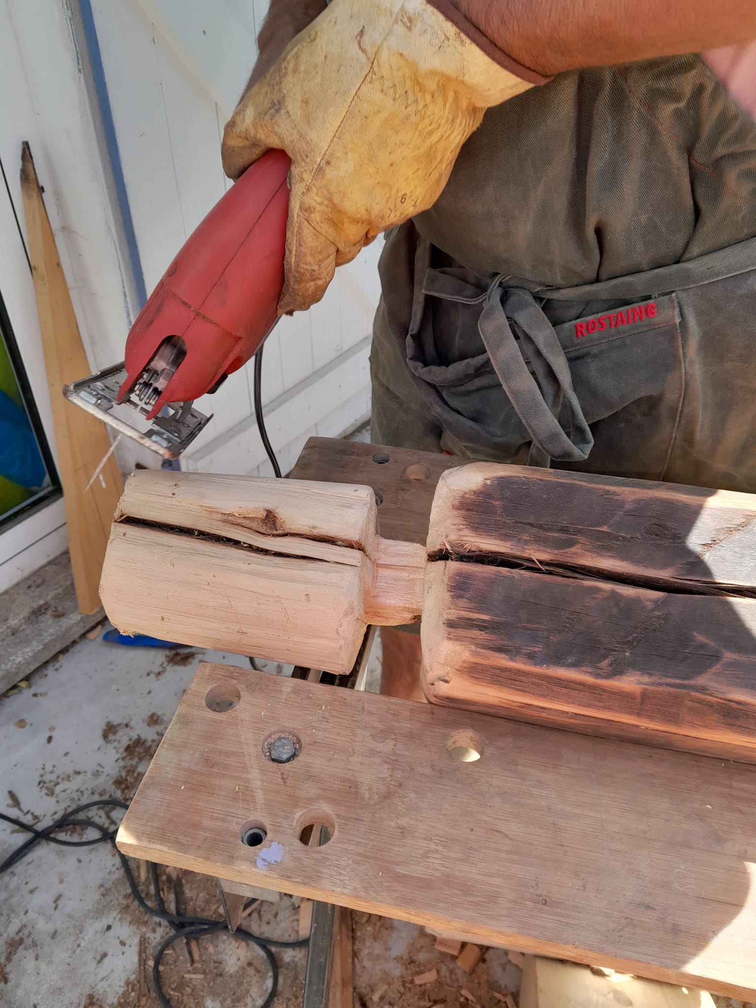 Exemplos de recuperação de alguns móveis que se encontram espalhados pela casa e de algumas das esculturas que fizemos com as velhas traves do telhado.