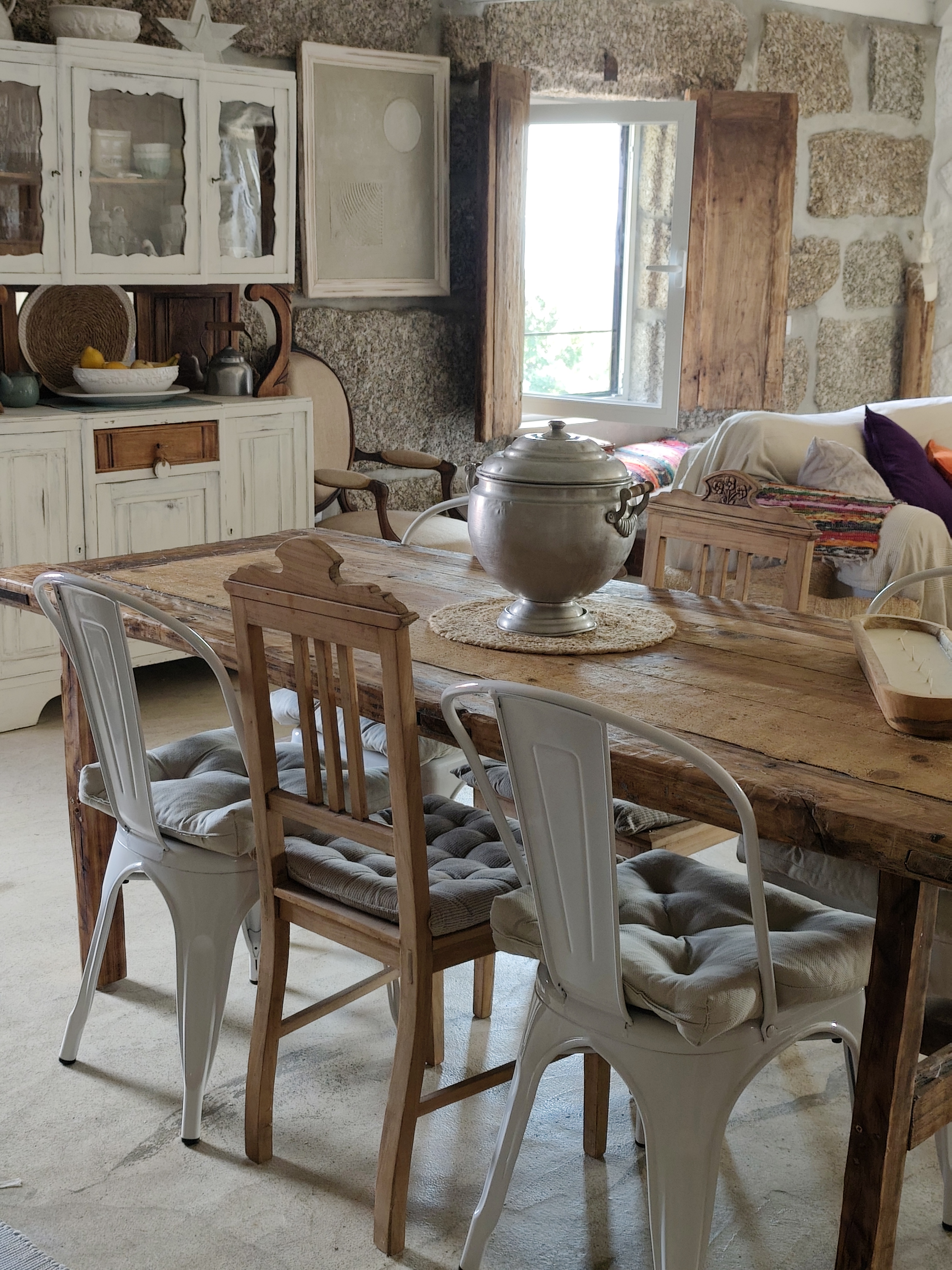 A casa não tinha nada de especial e tinha tudo. Tinha alma! Cada pedra contava histórias antigas, cada viga de madeira estalava com memória. Movidos pelo amor à arte e por uma filosofia de desperdício zero, embarcámos num processo de recuperação que não foi apenas físico, mas também emocional e criativo.
