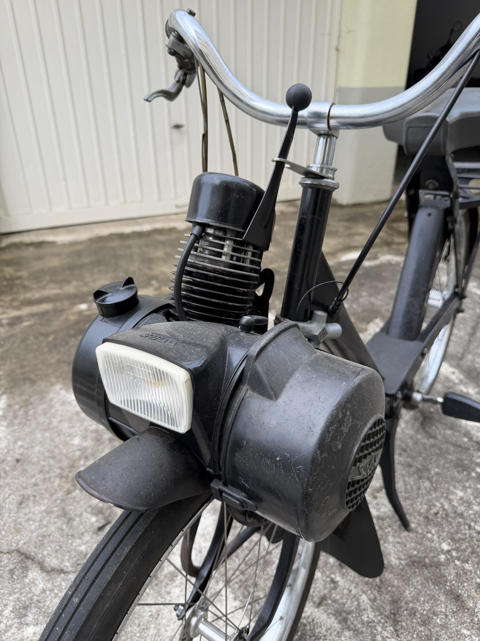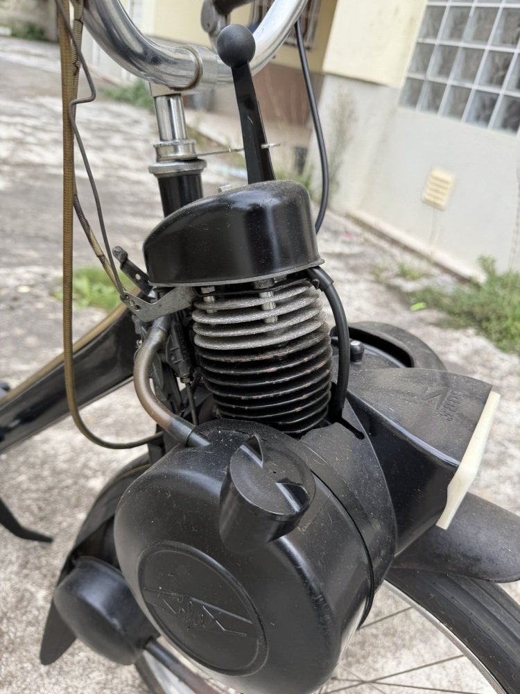 À alguns anos atrás, durante uma conversa com a minha madrinha sobre veículos ela disse que tinha uma coisa que eu ia gostar muito, pois tinha rodas e um motor. Eu, curioso, fui ter com ela no dia de Páscoa e ela mostra-me uma bicicleta com um motor a gasolina na roda da frente. O dia ficou ainda melhor quando ela me disse que era para mim.
